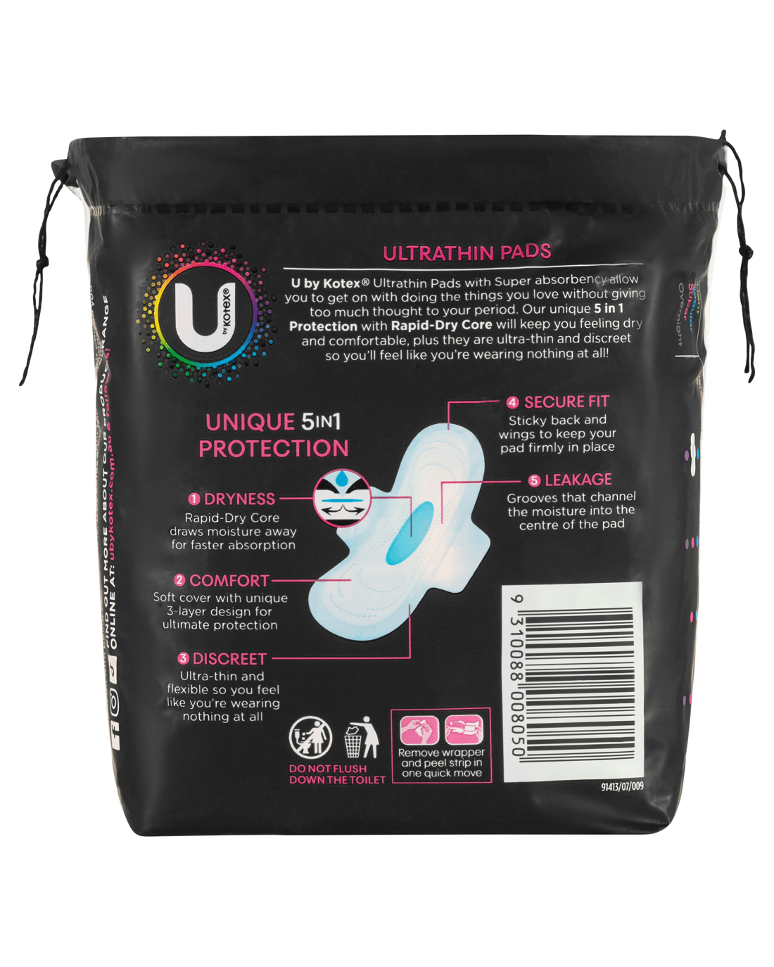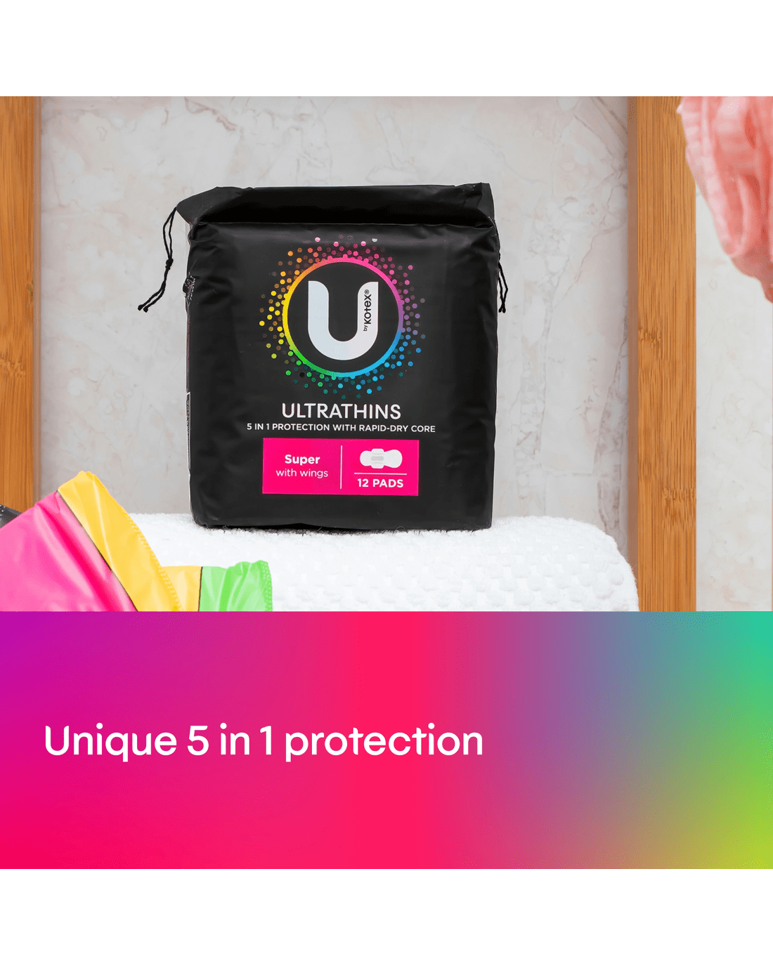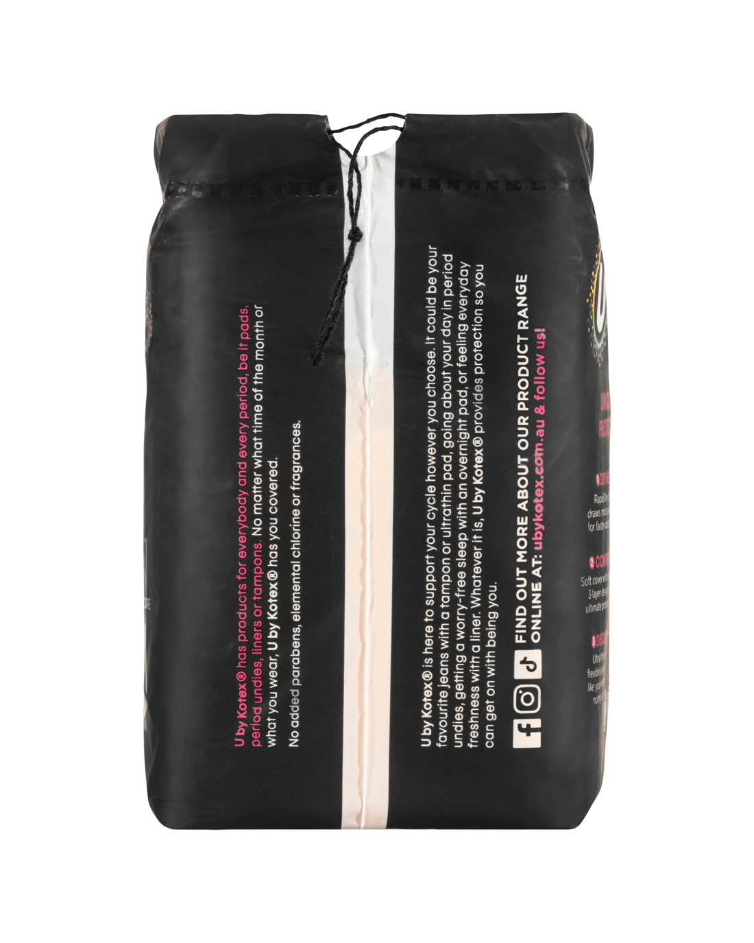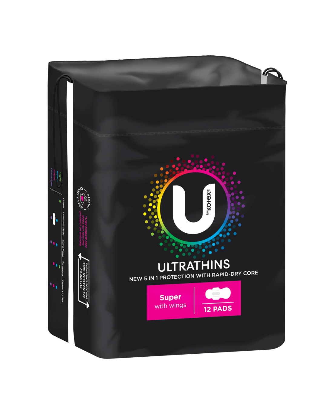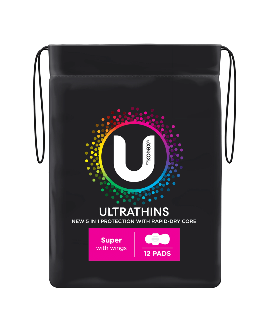 U by Kotex Ultra Thin Super With wings Pads help you forget about your period. The 3D Rapid Dry Core and unique 3-layer design will keep you feeling dry and comfortable, plus they are ultra thin and flexible so you'll feel like you're wearing nothing at all!