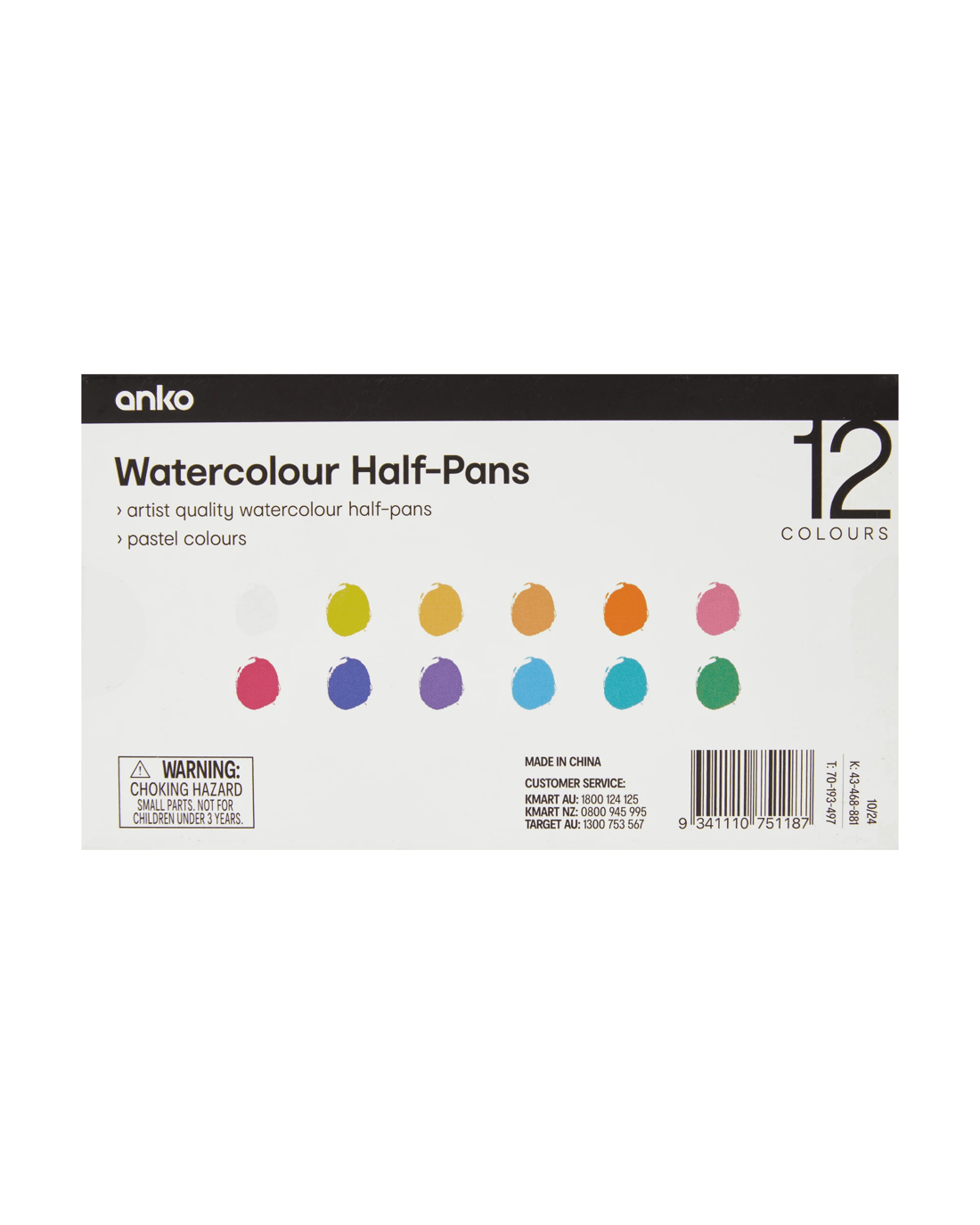 Sold by Kmart12 Pack Watercolour Half-Pans - Pastel