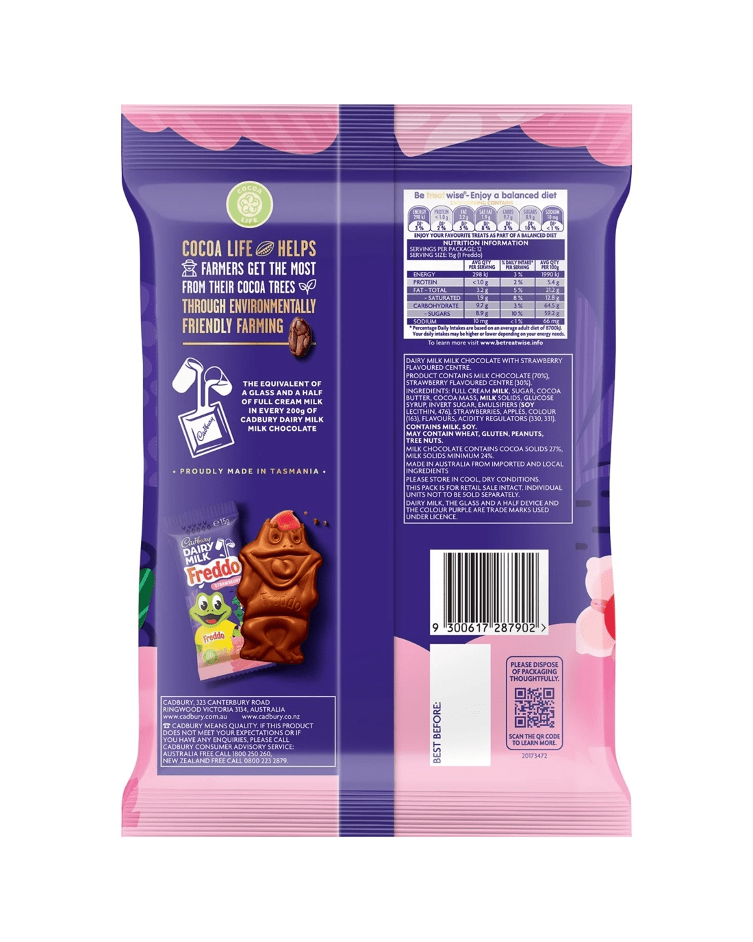 Spark playful curiosity with smooth and creamy Cadbury Dairy Milk milk chocolate with a strawberry flavoured centre. With 12 pieces per pack it's ideal to share and perfect for parties & celebrations