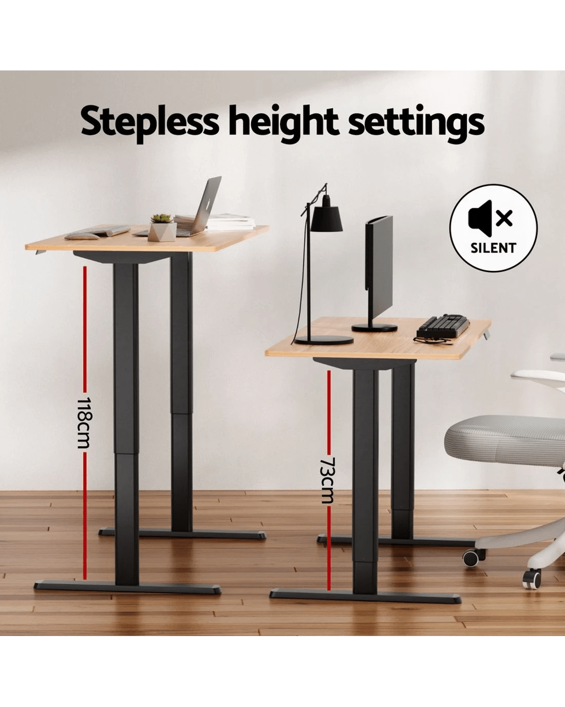 Transform your workspace with the Artiss Electric Standing Desk, designed for comfort and functionality. With motorised height adjustment ranging from 73cm to 118cm, you can switch effortlessly between sitting and standing positions. The desk includes height presets and adjustable collision sensitivity for a personalised and safe experience. Its sturdy powder-coated metal frame ensures stability, while the smooth-edged desktop adds a modern touch. Quiet in operation, this desk is perfect for creating a focused environment in your home or office. Experience a contemporary design that supports your productivity and well-being.