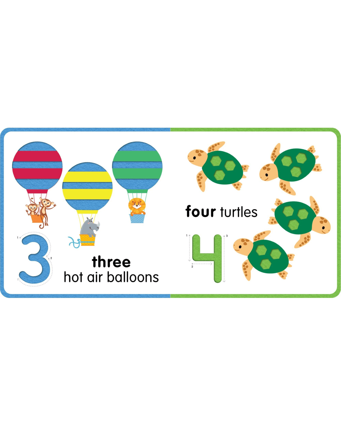 Children will enjoy learning how to count with this playful book! Each page provides a fun tactile experience where children can trace die-cut numerals, helping them learn the form of each number with their fingertips. The pages are filled with adorable animals and cute objects with die-cut felt patches for kids to touch and count.