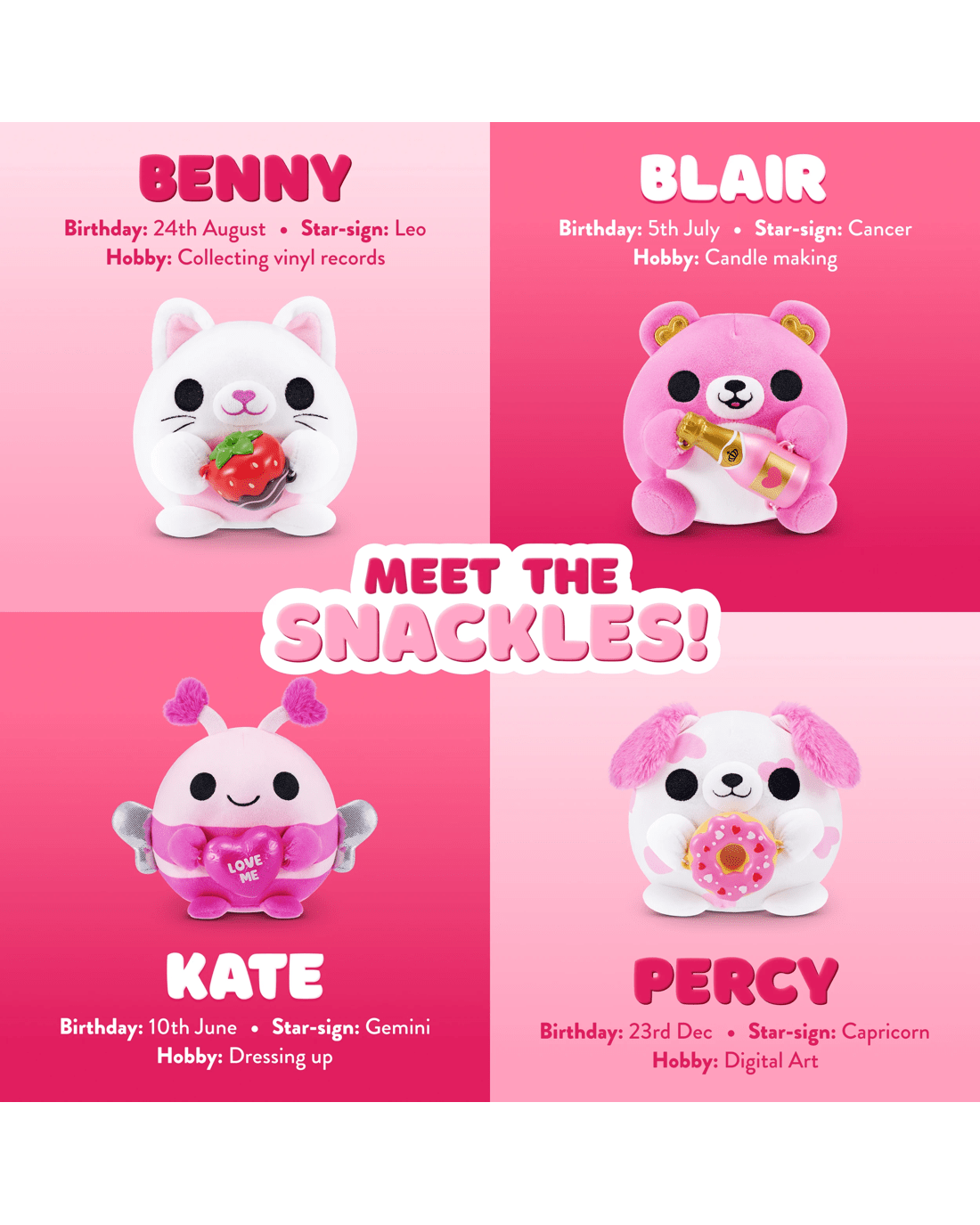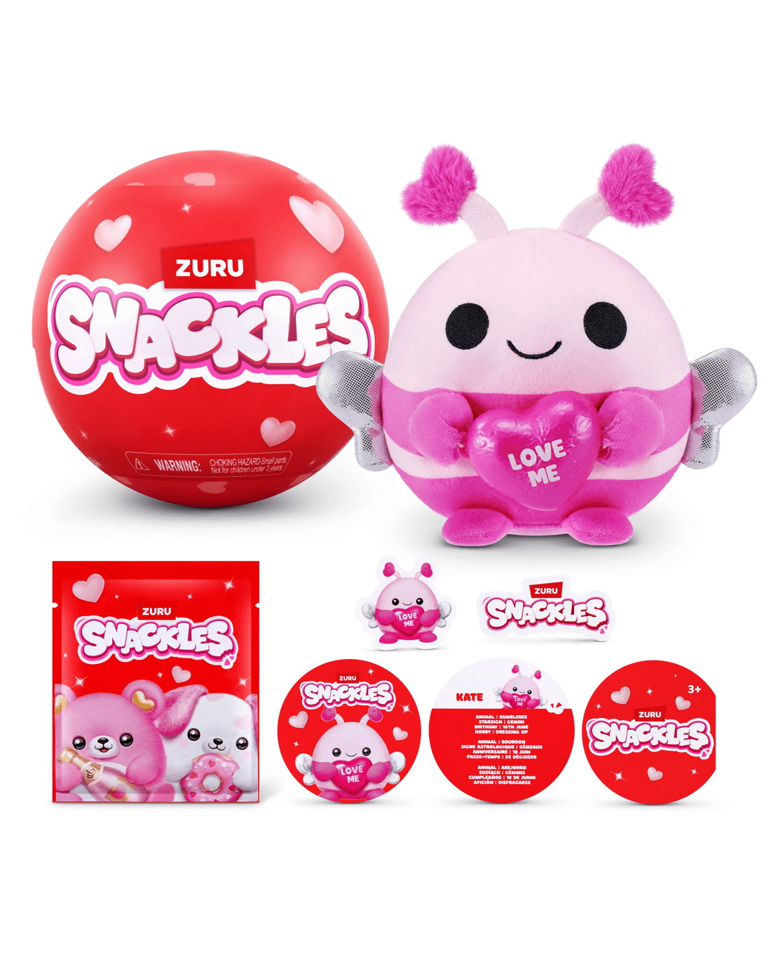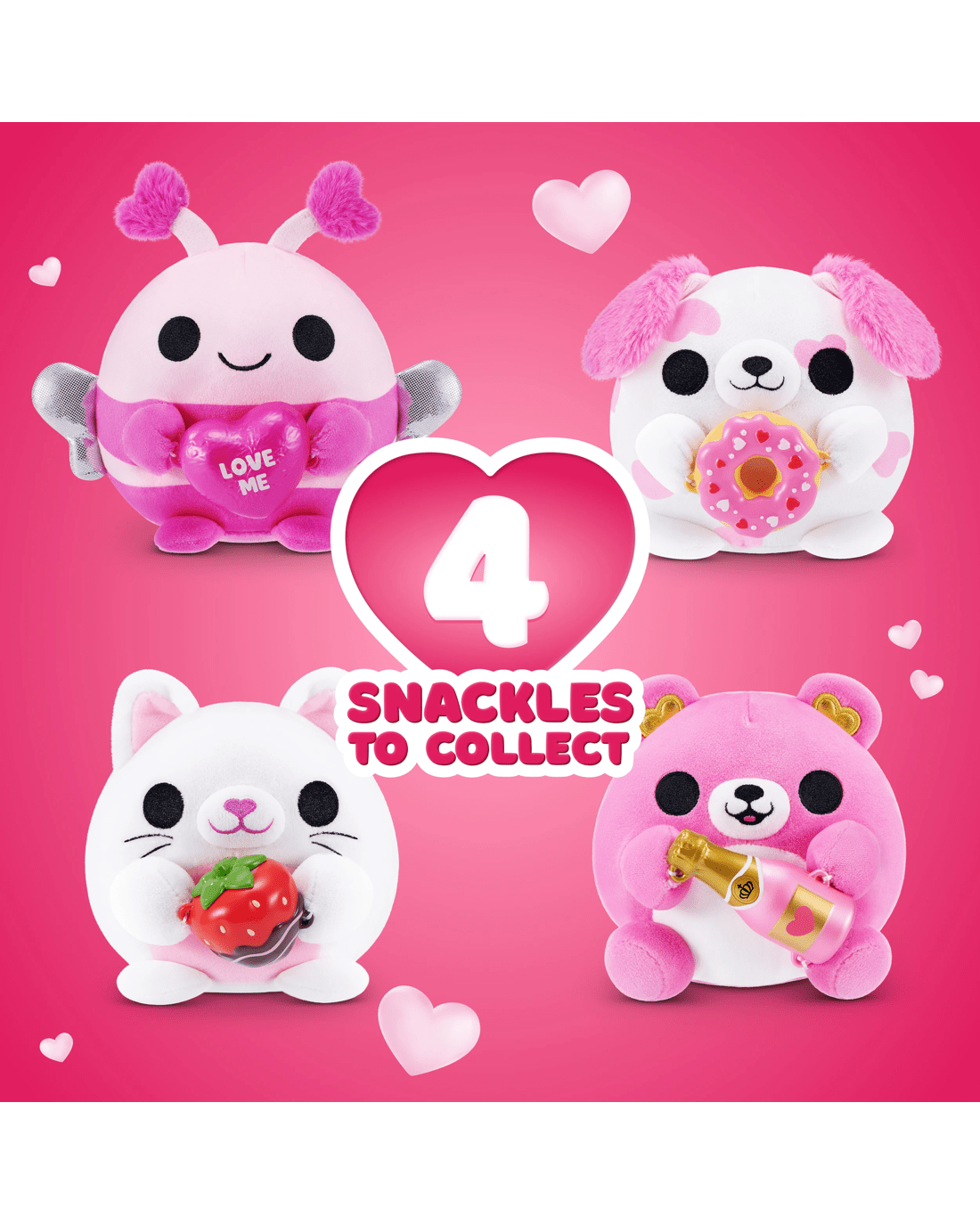- Meet them all: Search high and low for your favourite Valentine's Snackles! There are 4 exclusive Valentine’s Snackles plush toys to collect and display