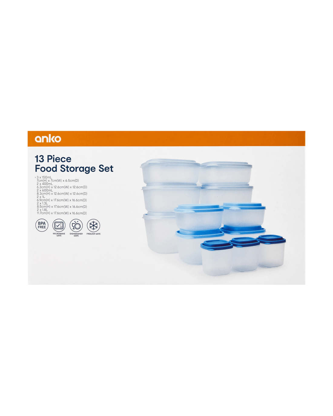 - Includes 3 x 150ml containers, 2 x 400ml containers, 2 x 600ml containers, 2 x 1 litre containers, 2 x 1.3 litres containers and 2 x 1.8 litres containers