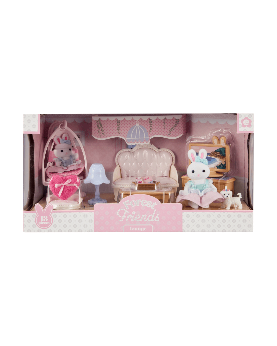 This delightful 13 Piece Forest Friends Lounge Playset includes cute animal, comfy chairs, a table and fun accessories - creating the perfect setting for imaginative play and magical storytelling.