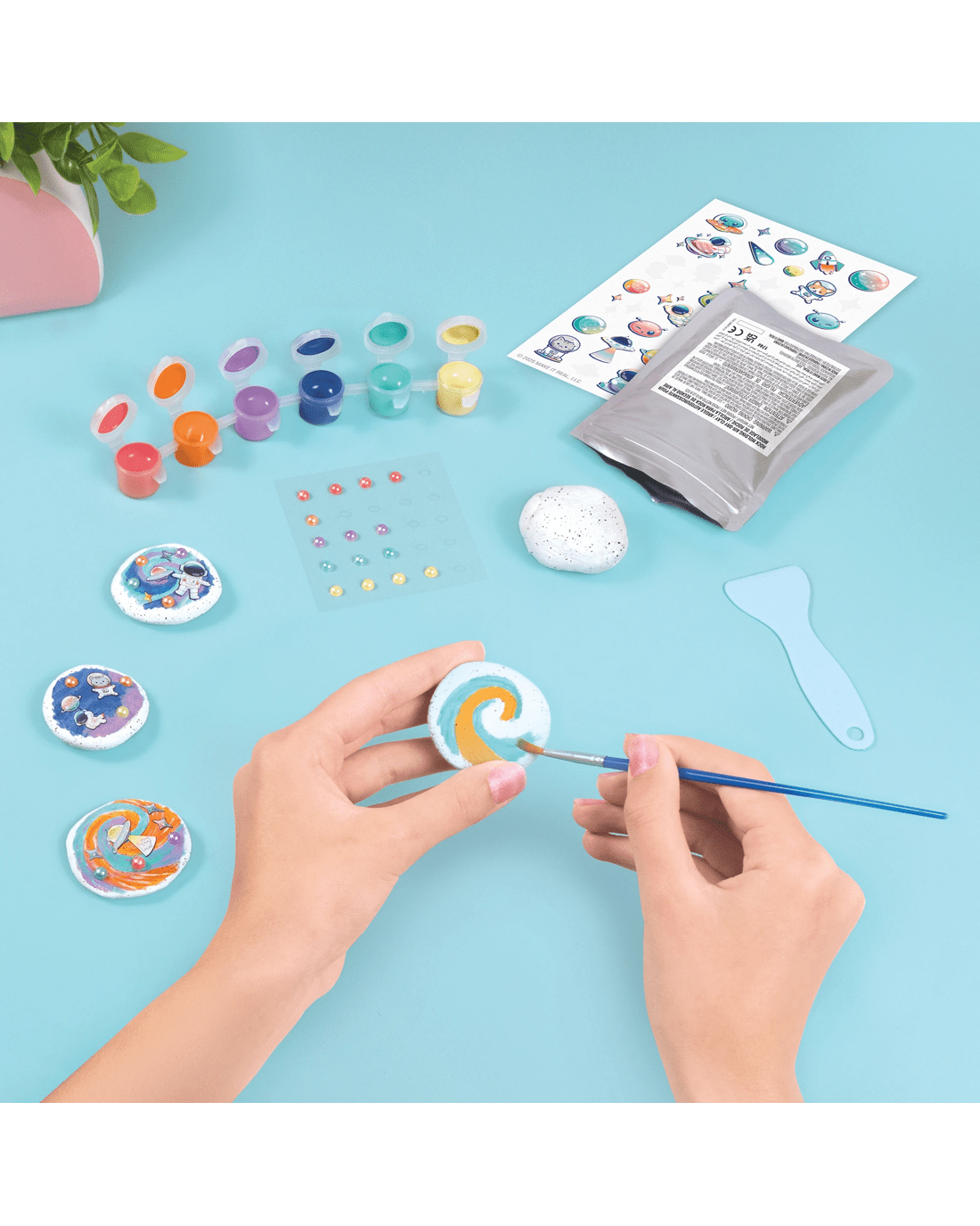 - Includes 2 x packs of rough dough, 6 x acrylic paint colors, 1 x paint brush, 1 x sheet of adhesive pearls, 1 x transfer sticker sheet, 1 x transfer tool and 1 x instruction sheet