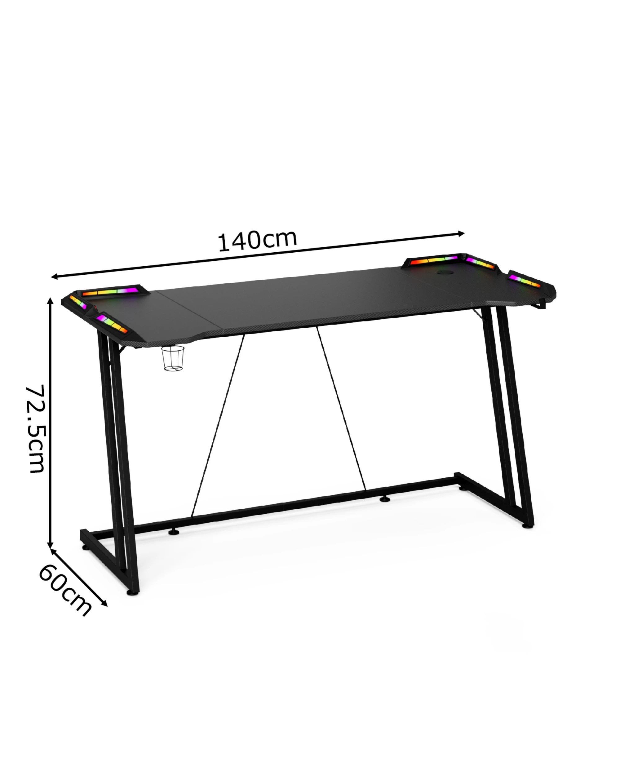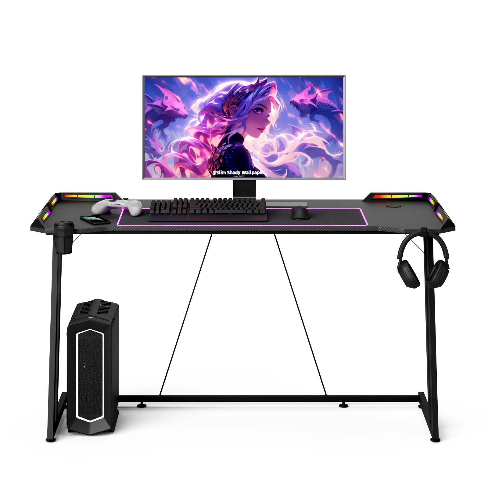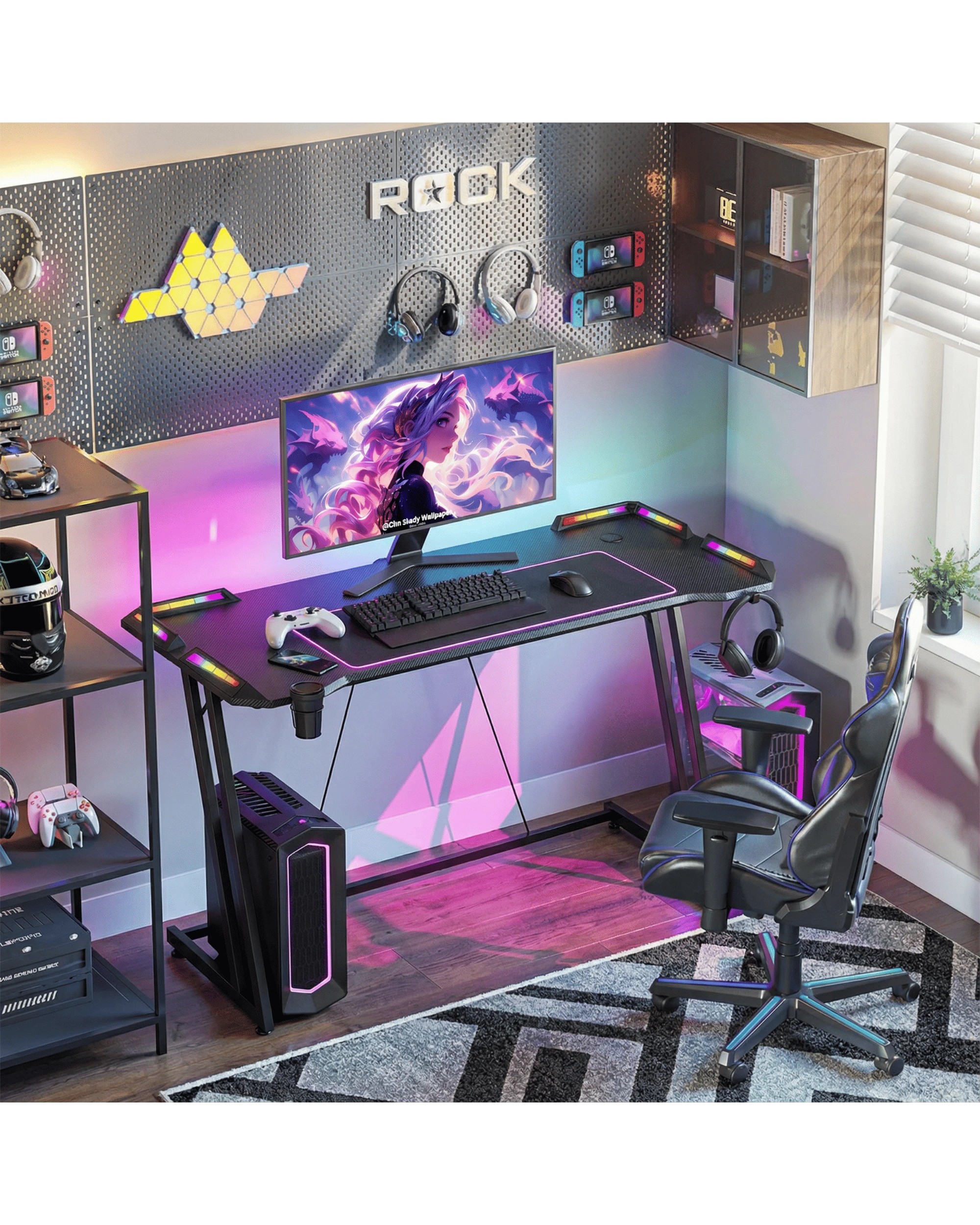 140cm LED RGB Gaming Desk Carbon Fiber Surface Computer Desk with Cup Holder Headphone Hook