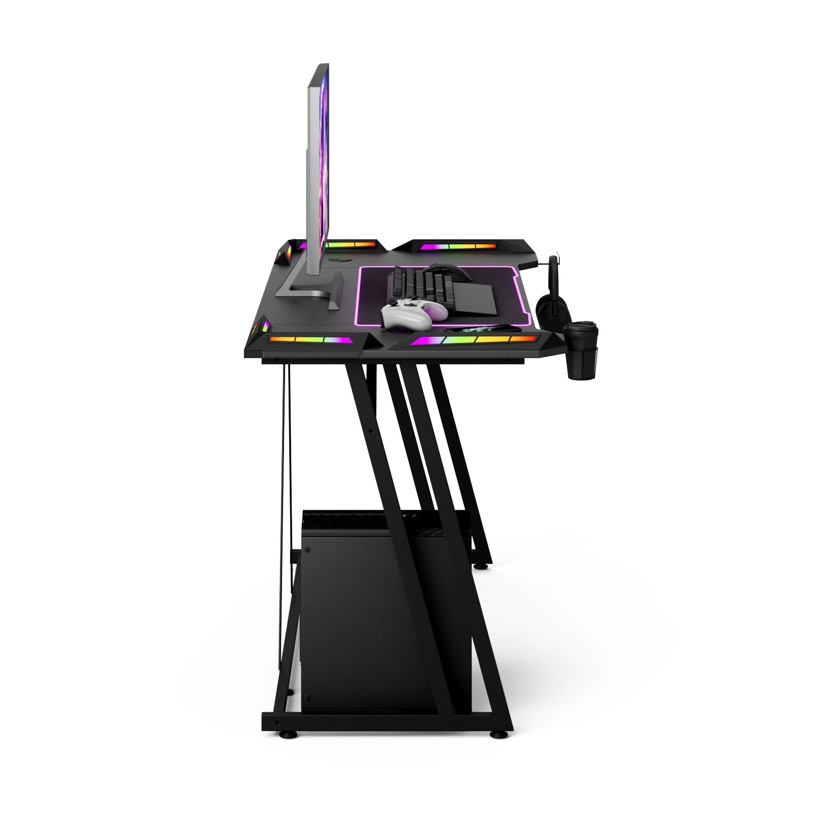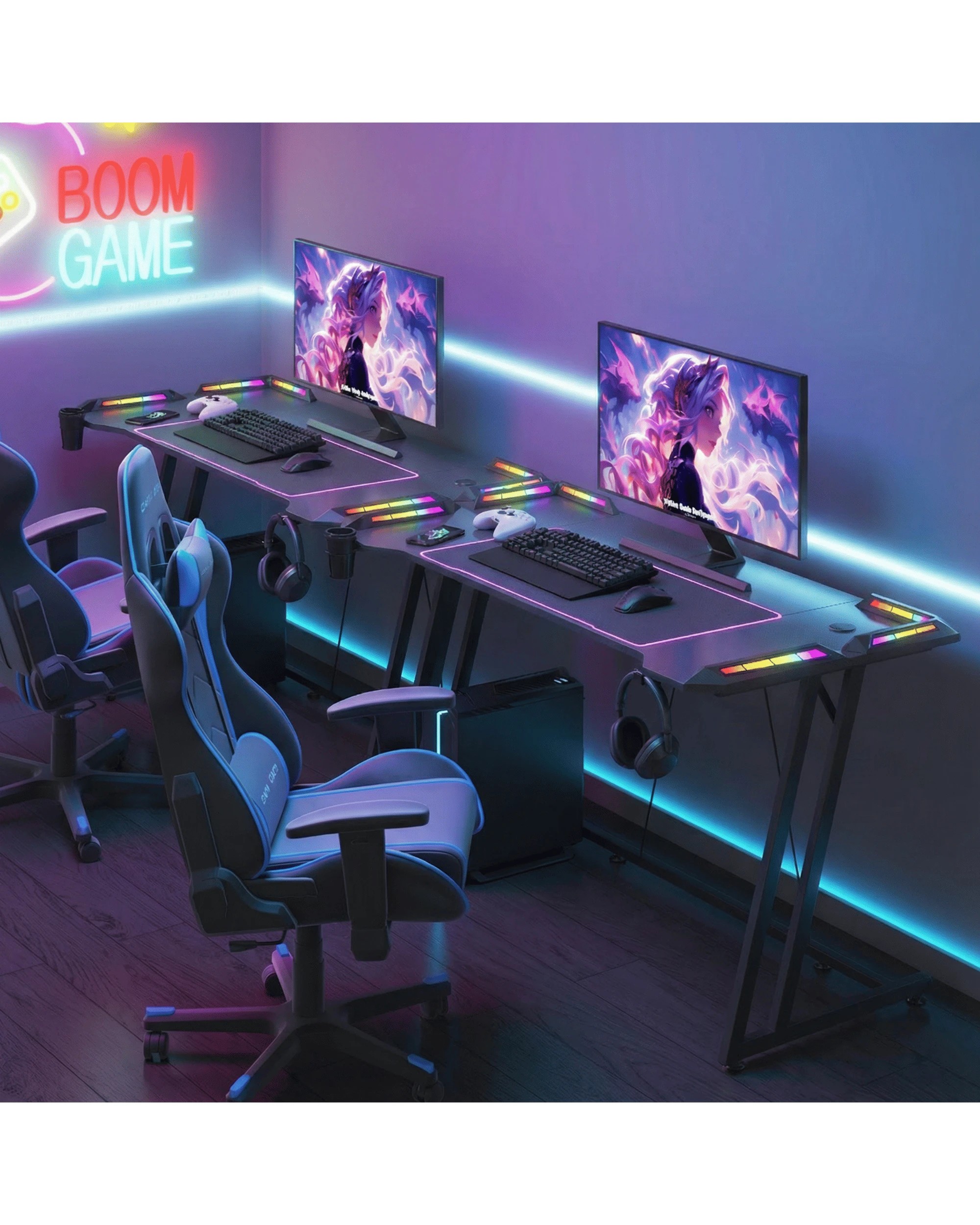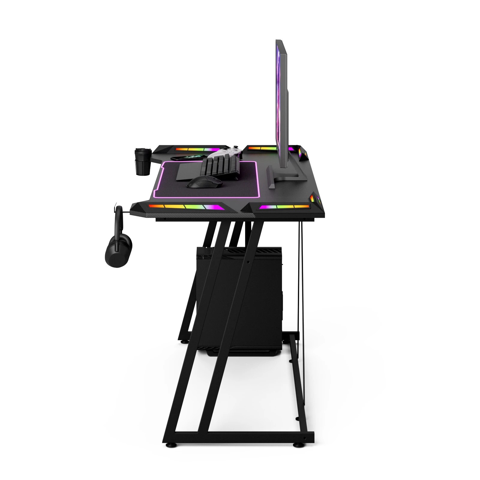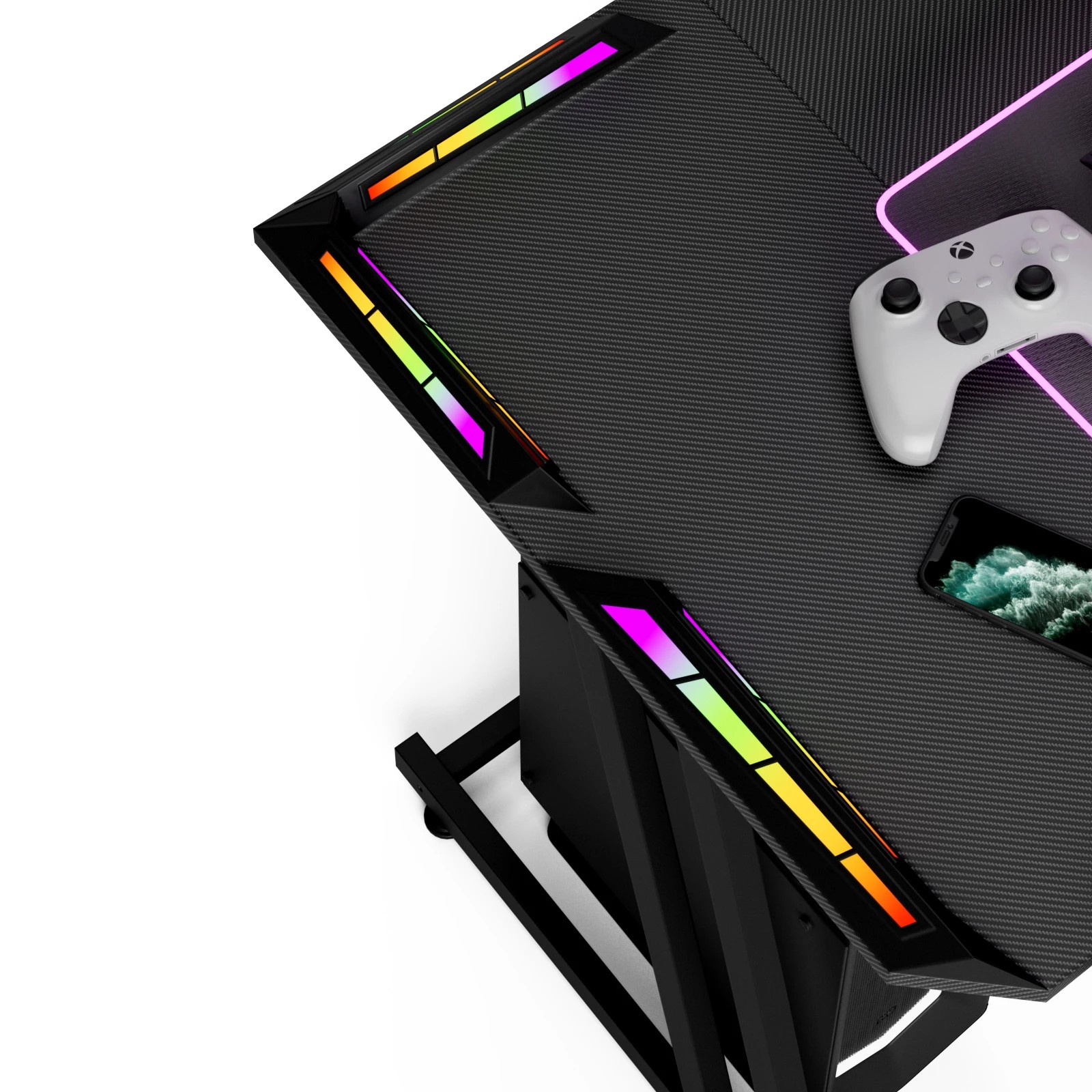 140cm LED RGB Gaming Desk Carbon Fiber Surface Computer Desk with Cup Holder Headphone Hook