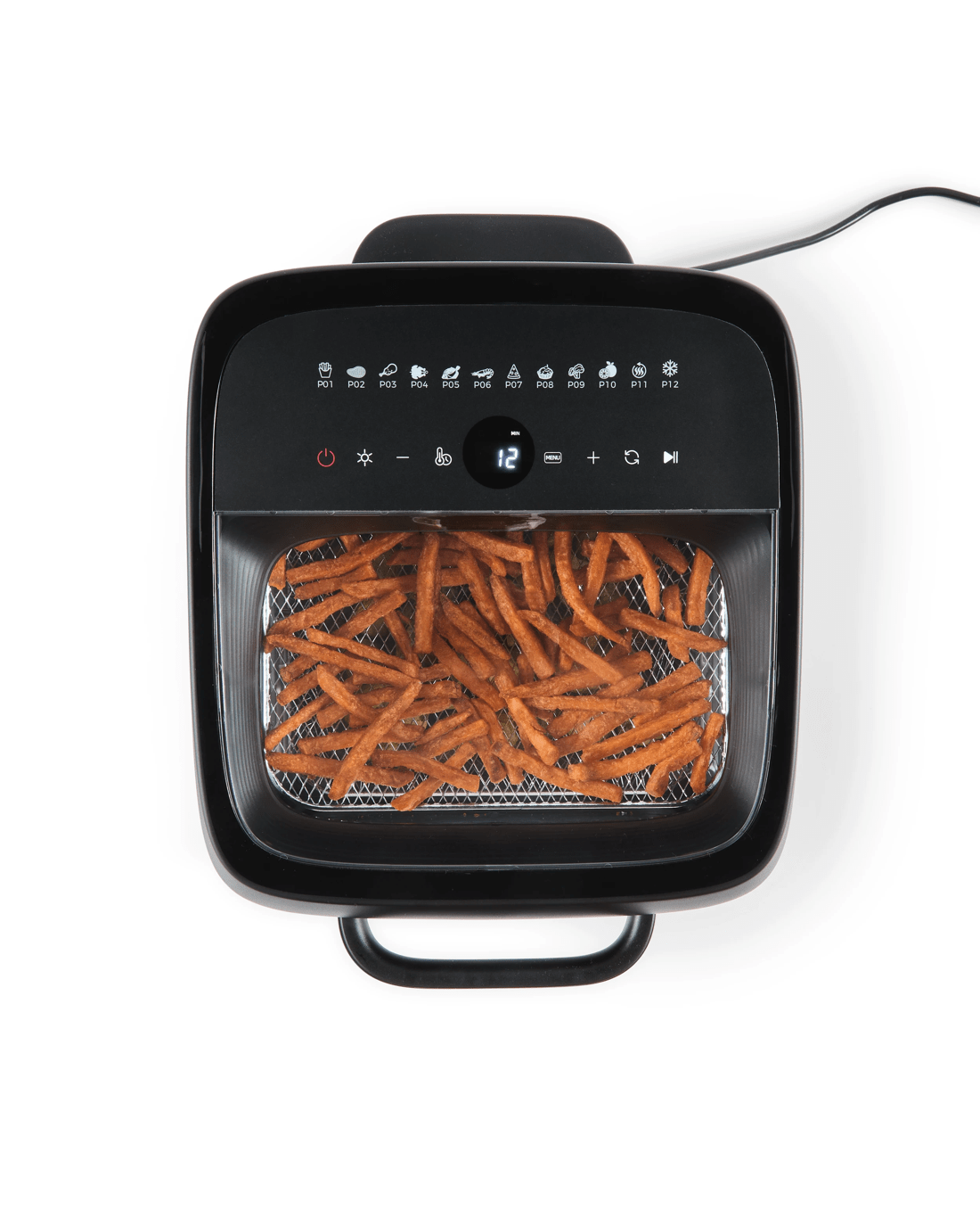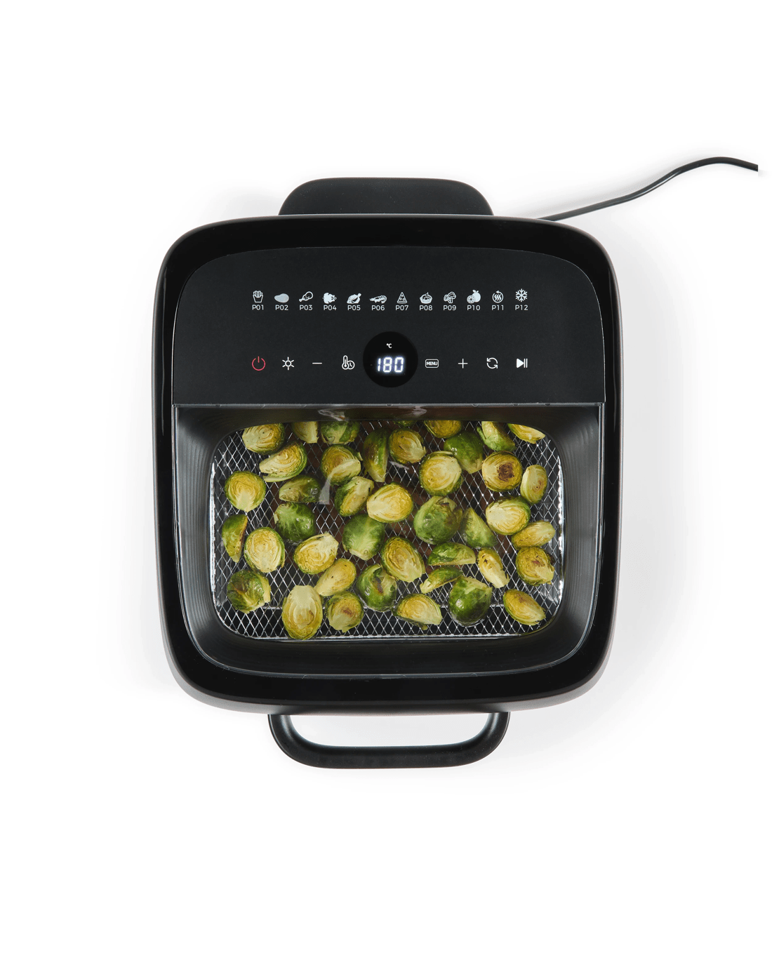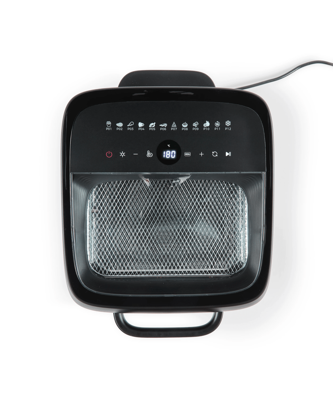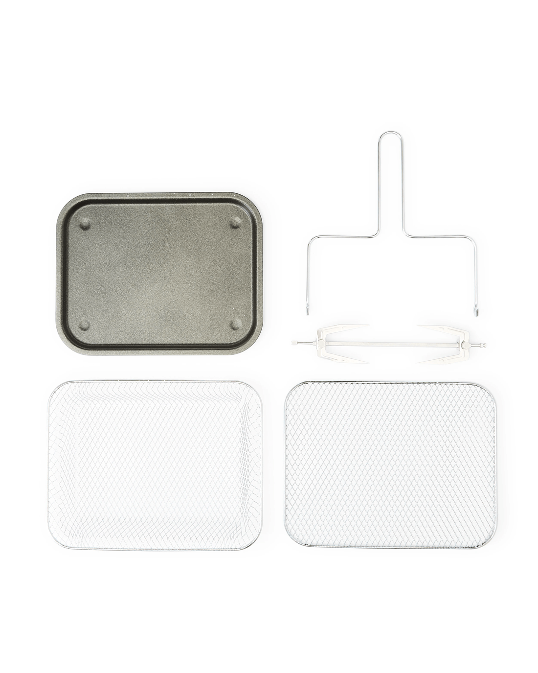 - Includes 1 x rotisserie fork, 1 x fetch rack, 1 x oil tray, 1 x mesh basket and 1 x air flow rack