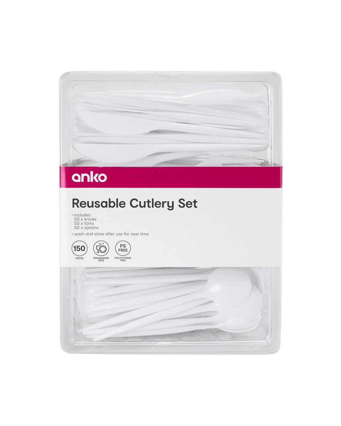 Sold by Kmart150 Piece Reusable White Plastic Cutlery Set