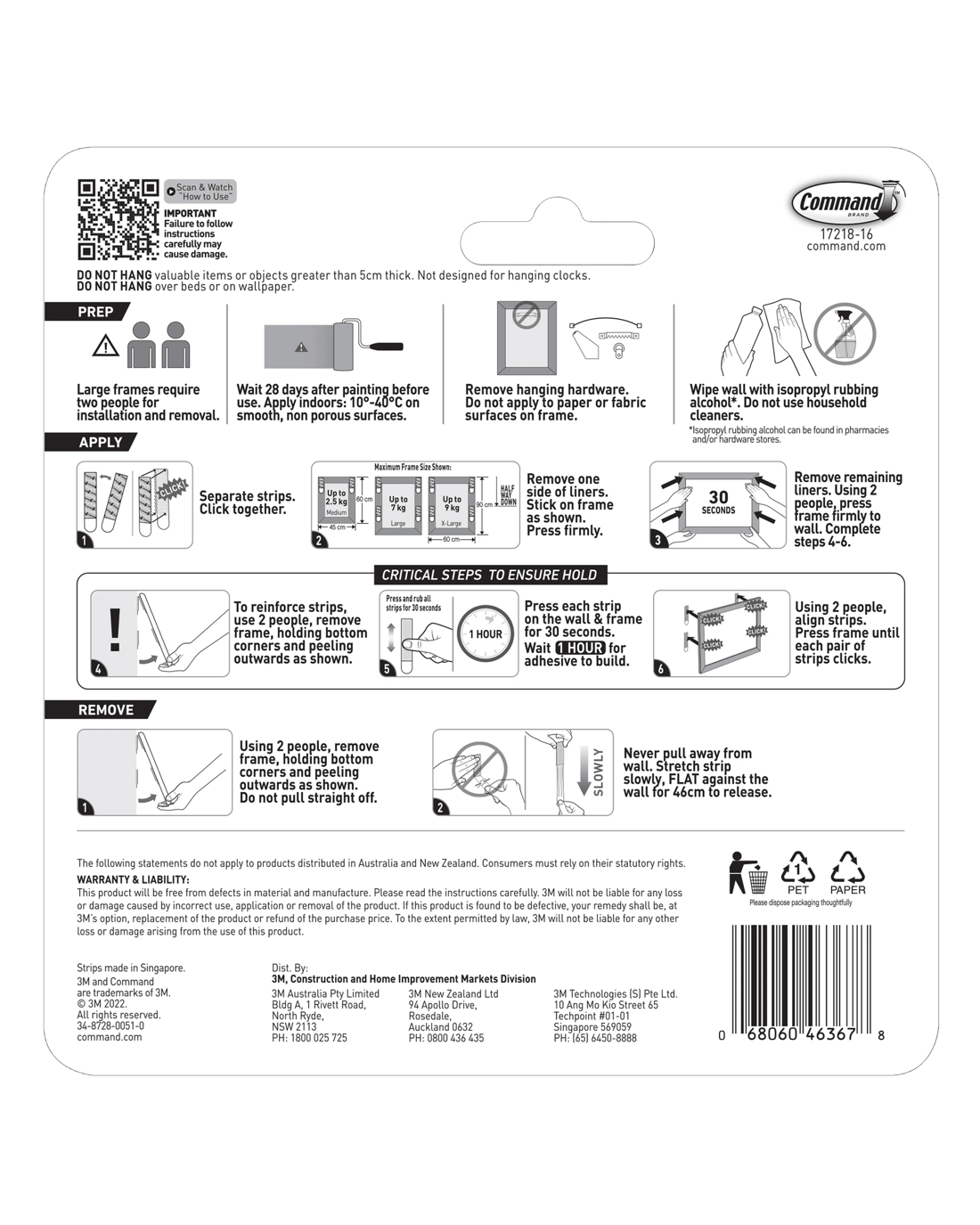 16 Pack 3M Command Picture Hanging Strips