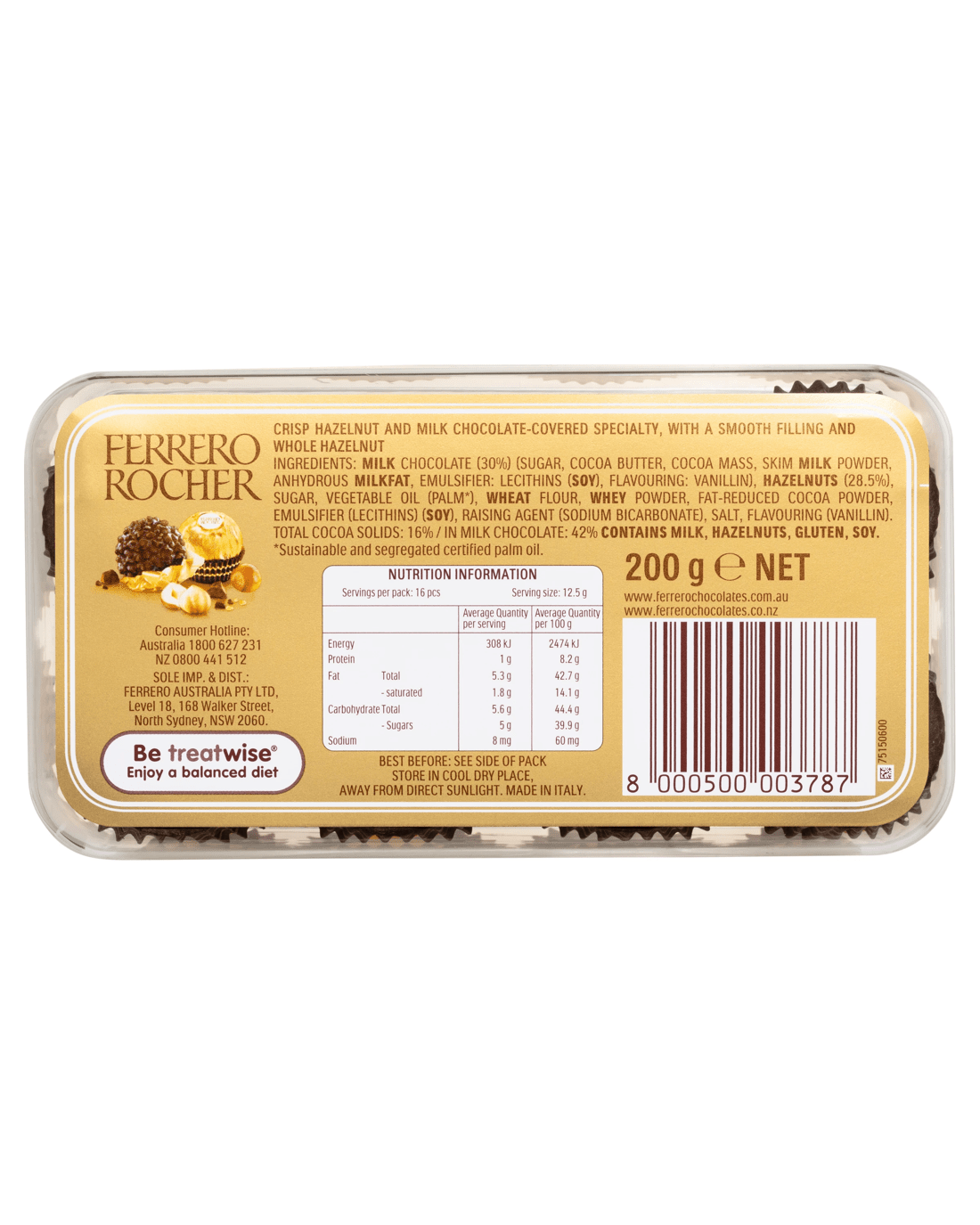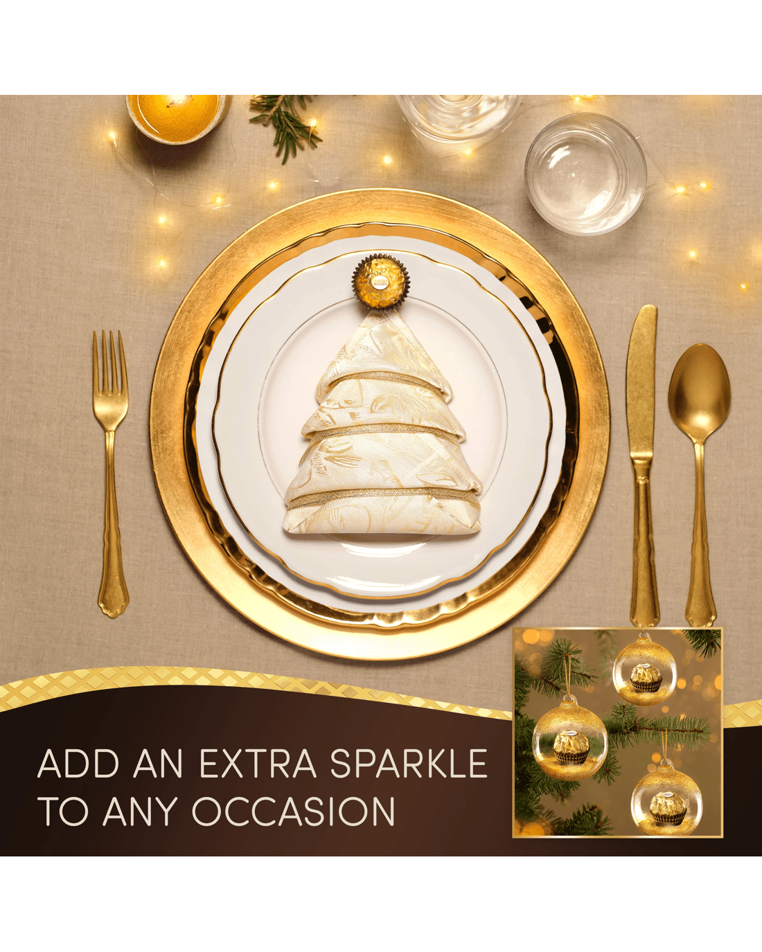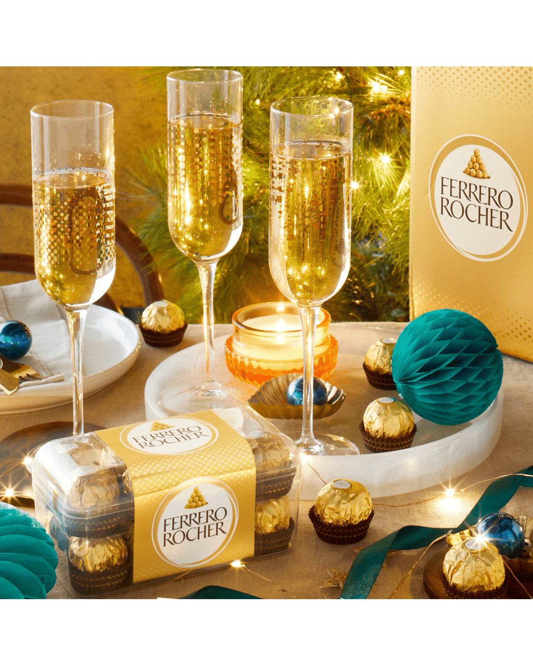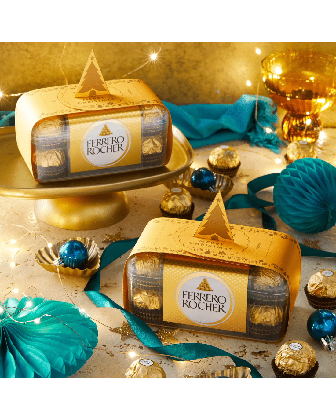 Each Ferrero Rocher has a stylish golden wrapper and paper cup that make it even more special. Always presented in an elegant chocolate box.