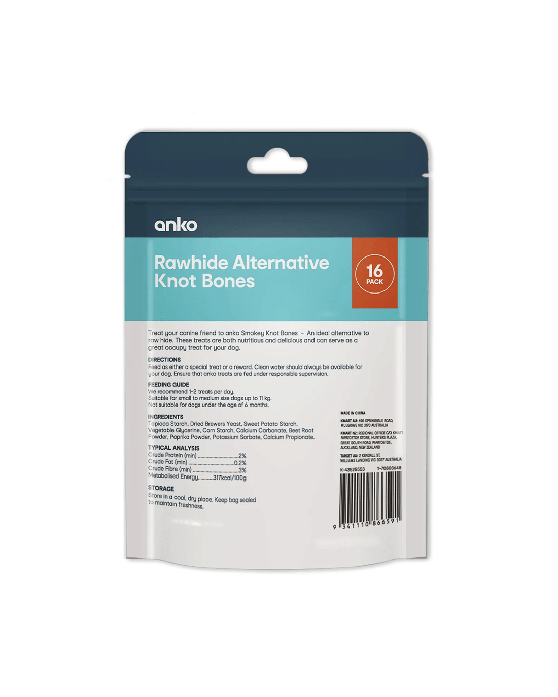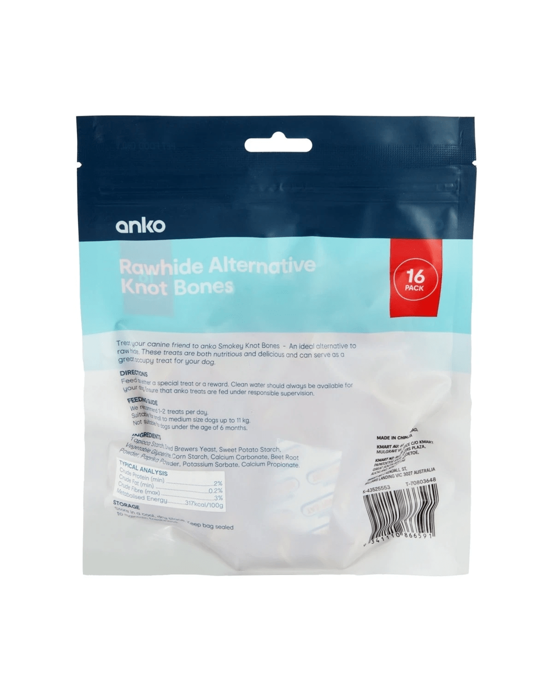 Discover the Anko Rawhide Alternative Knot Bones, a delightful treat for your furry friend. This 16-pack of dog treats is designed to satisfy your dog's natural chewing instincts while promoting dental health. Made from high-quality ingredients, these knot bones are a safe and tasty alternative to traditional rawhide, ensuring your pet enjoys every bite without the worry. Treat your dog to a delicious and nutritious snack that keeps them happy and engaged.