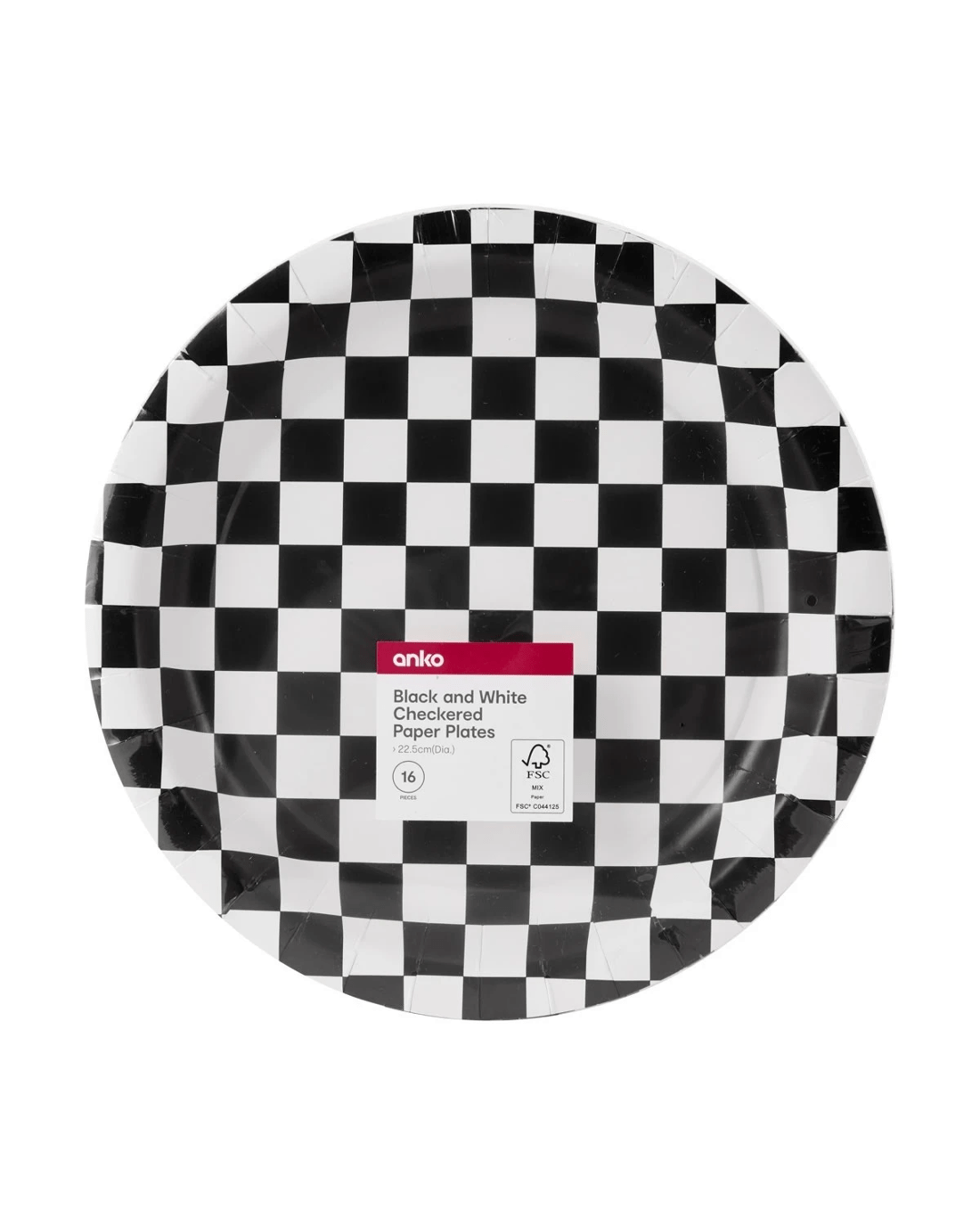 16 Piece Black and White Checkered Paper Plates