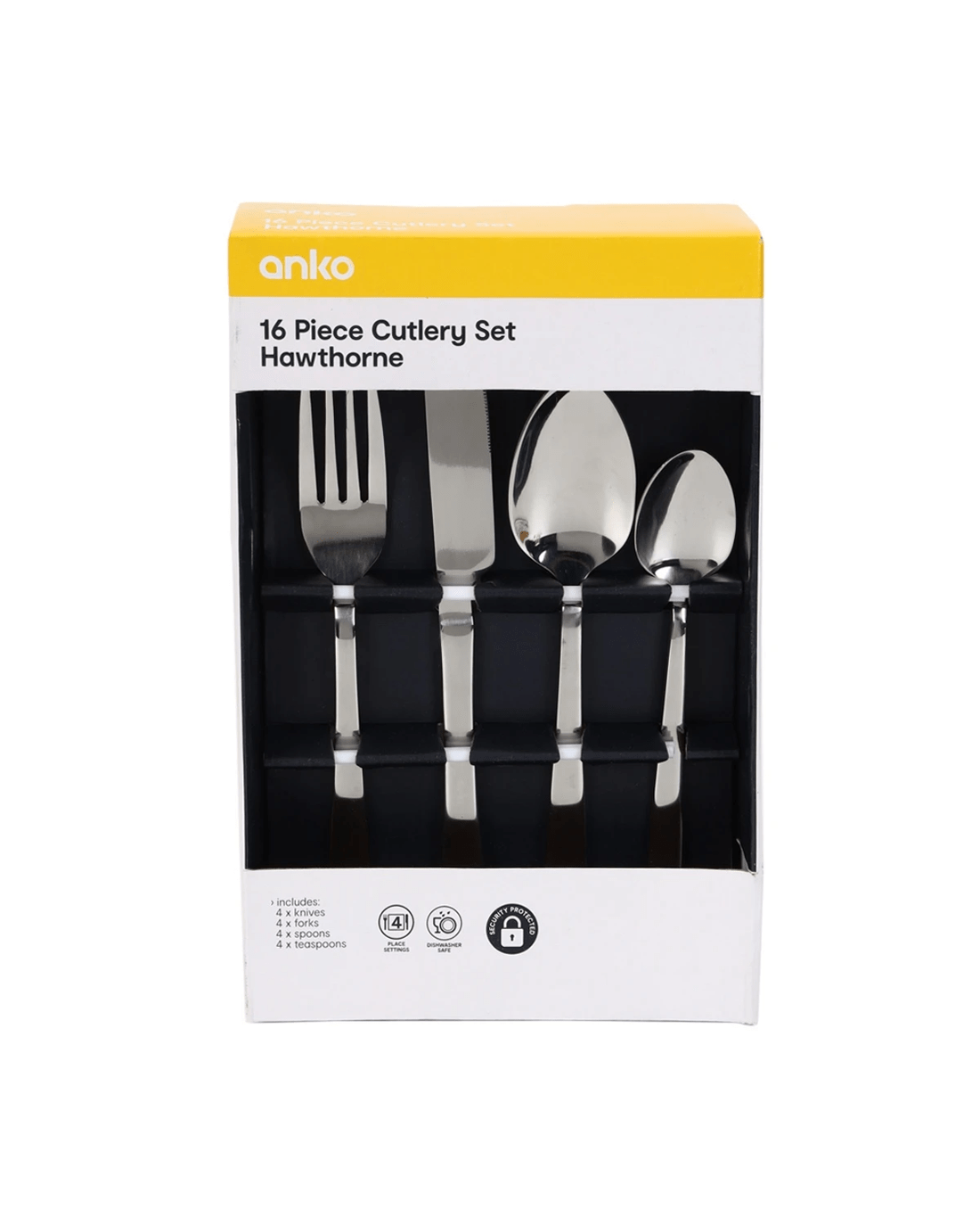 - Includes 4 x knives, 4 x forks, 4 x spoons and 4 x teaspoons