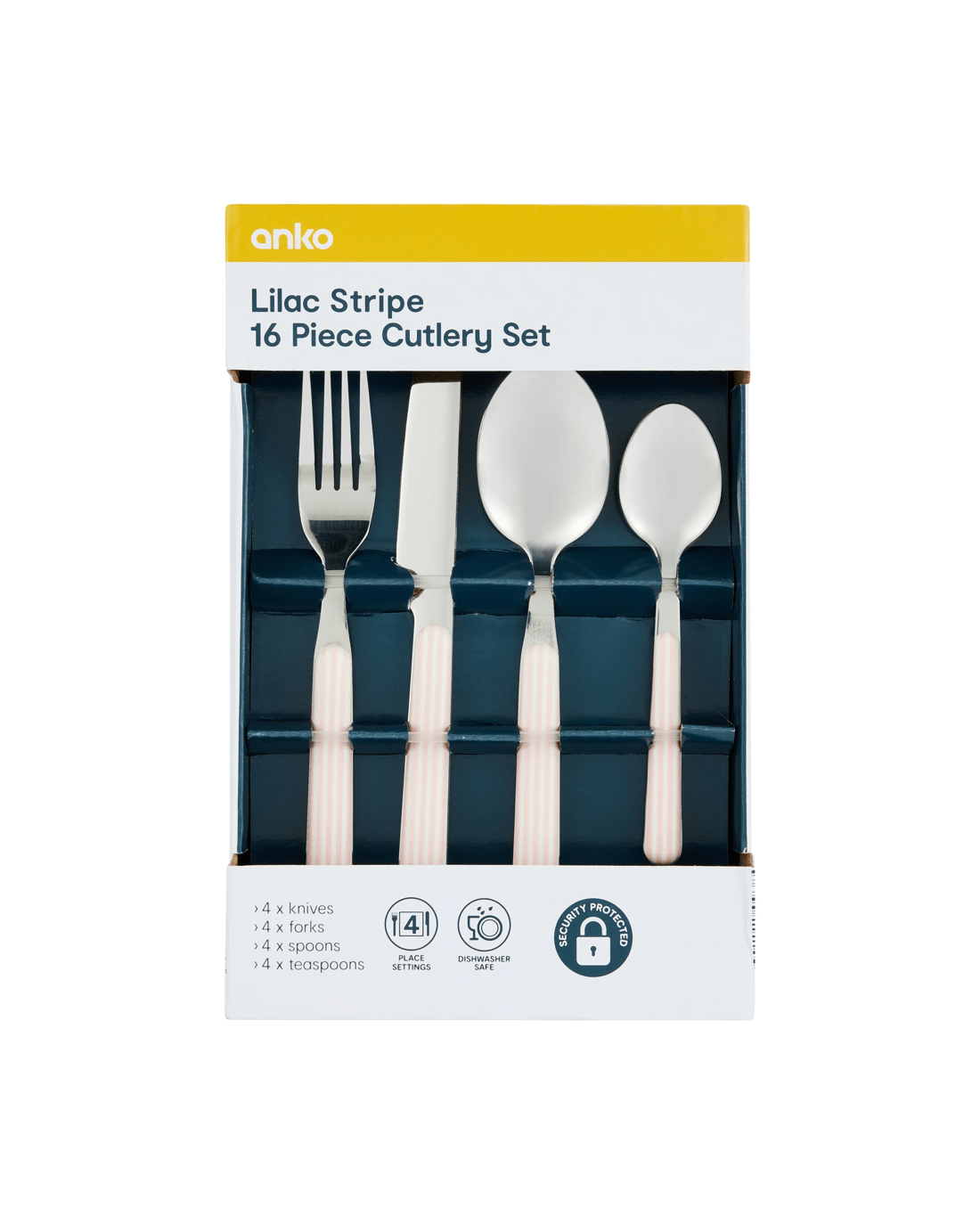 Sold by Kmart16 Piece Lilac Stripe Cutlery Set