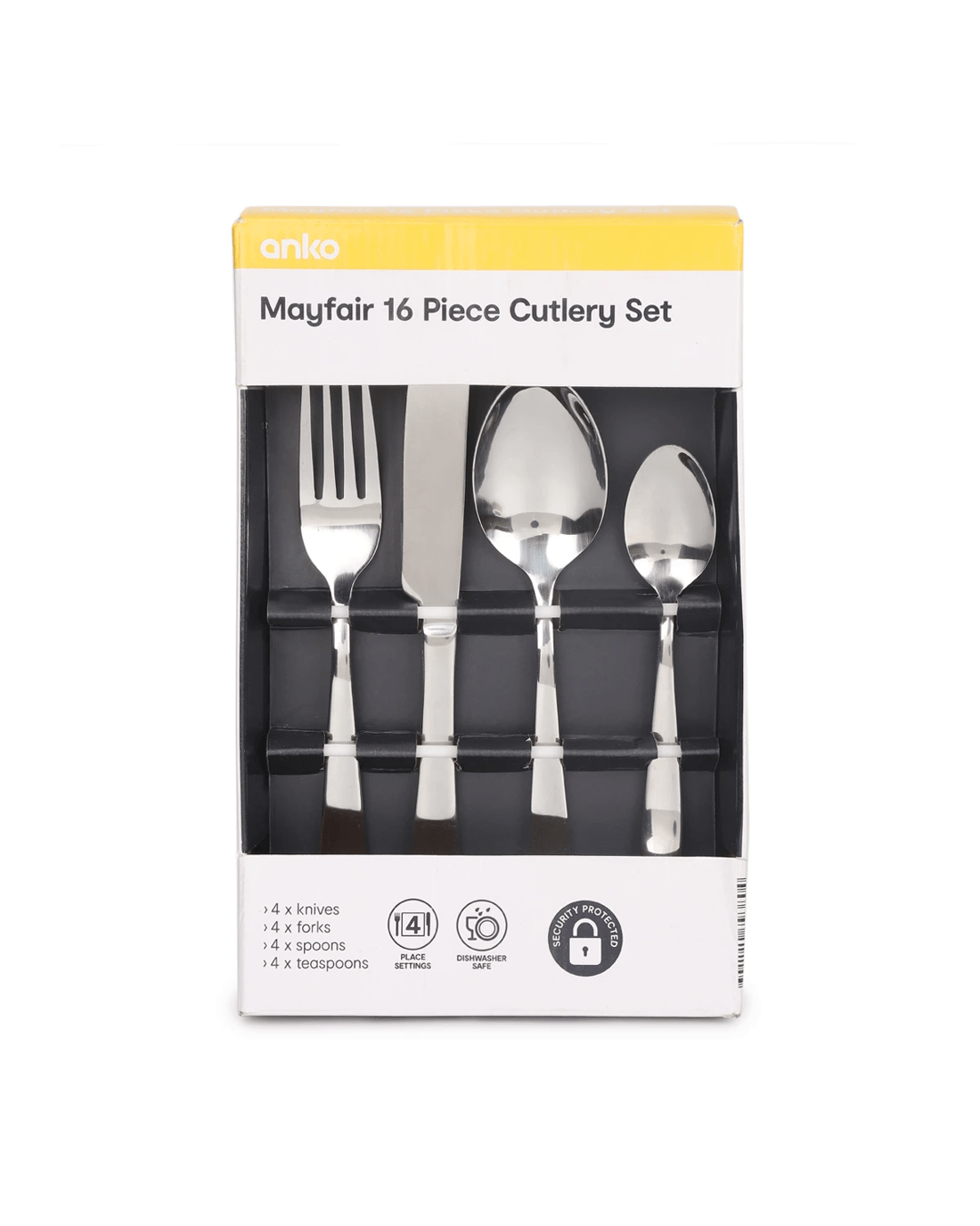 This 16 Piece Mayfair Cutlery Set offers a refined look, perfect for everyday dining or special gatherings.Product Details