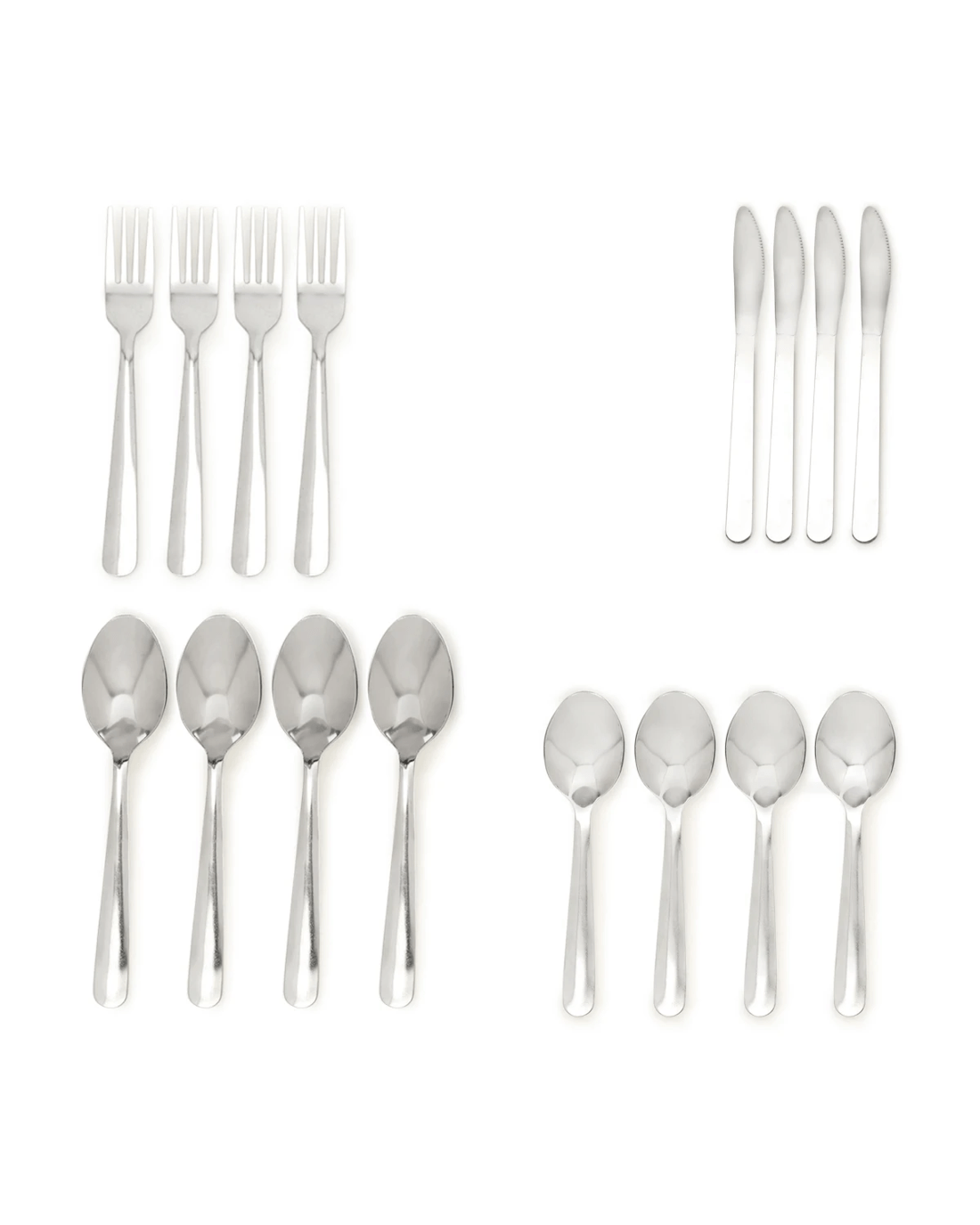 - Includes 4 dinner spoons, 4 forks, 4 knives and 4 dessert spoons