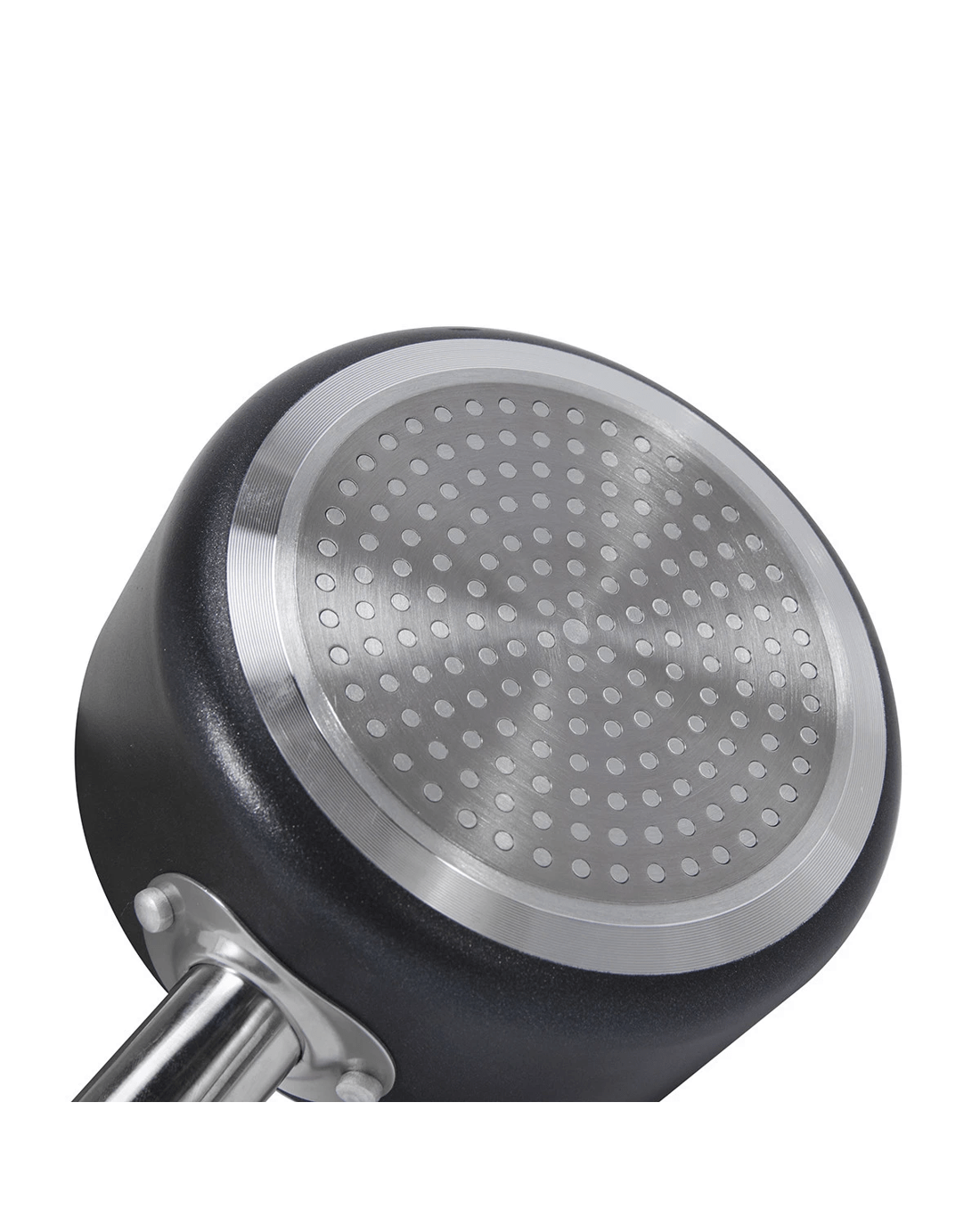 Hard Anodised Aluminium Body: Designed for efficient heat distribution, the hard anodised construction is twice as hard as stainless steel and helps to minimise hotspots while resisting warping during use.