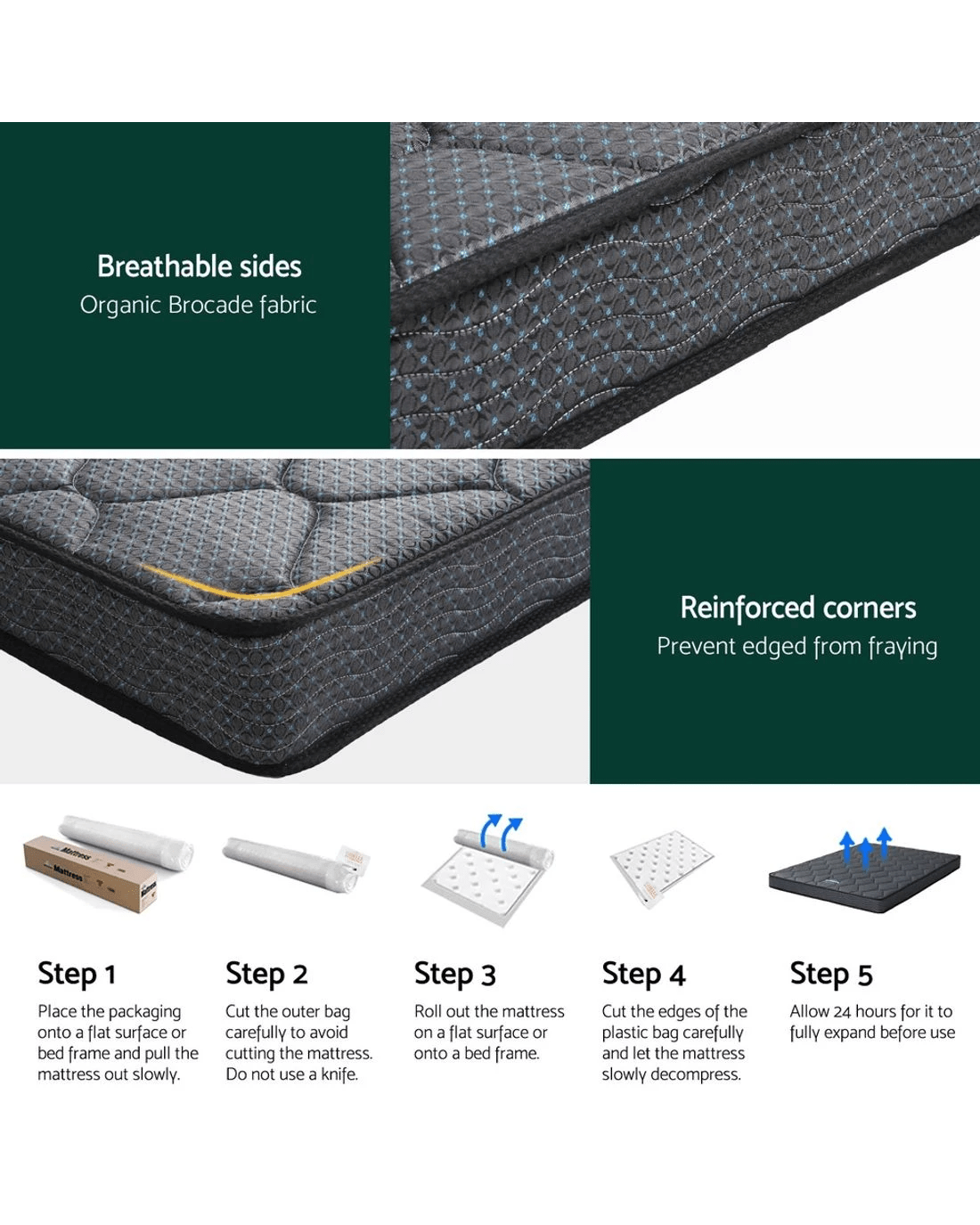 Built with durability in mind, the mattress boasts a Bonnell spring core with 6-turn coils for resilience and support. High-density foam layers add an extra touch of comfort, while the excellent edge support ensures stability and prevents sagging. Whether for a master bedroom or guest room, this mattress delivers quality sleep night after night.