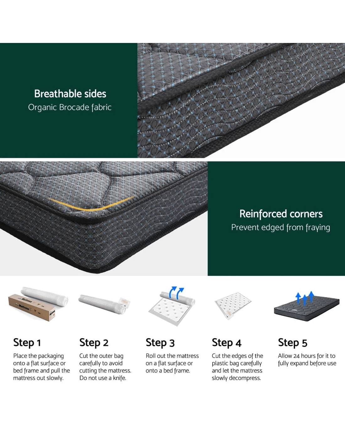 Built with durability in mind, the mattress boasts a Bonnell spring core with 6-turn coils for resilience and support. High-density foam layers add an extra touch of comfort, while the excellent edge support ensures stability and prevents sagging. Whether for a master bedroom or guest room, this mattress delivers quality sleep night after night.