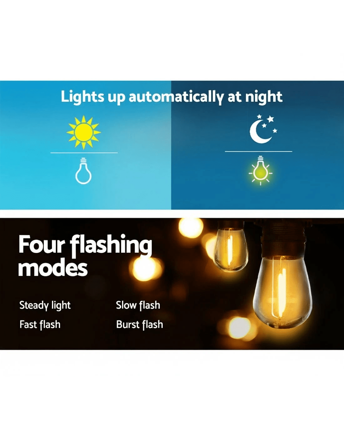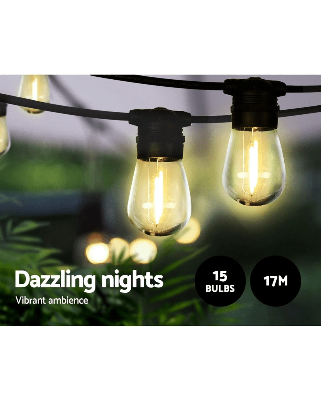 17m Solar Festoon Lights Outdoor LED String Light Christmas Party Garden - Black