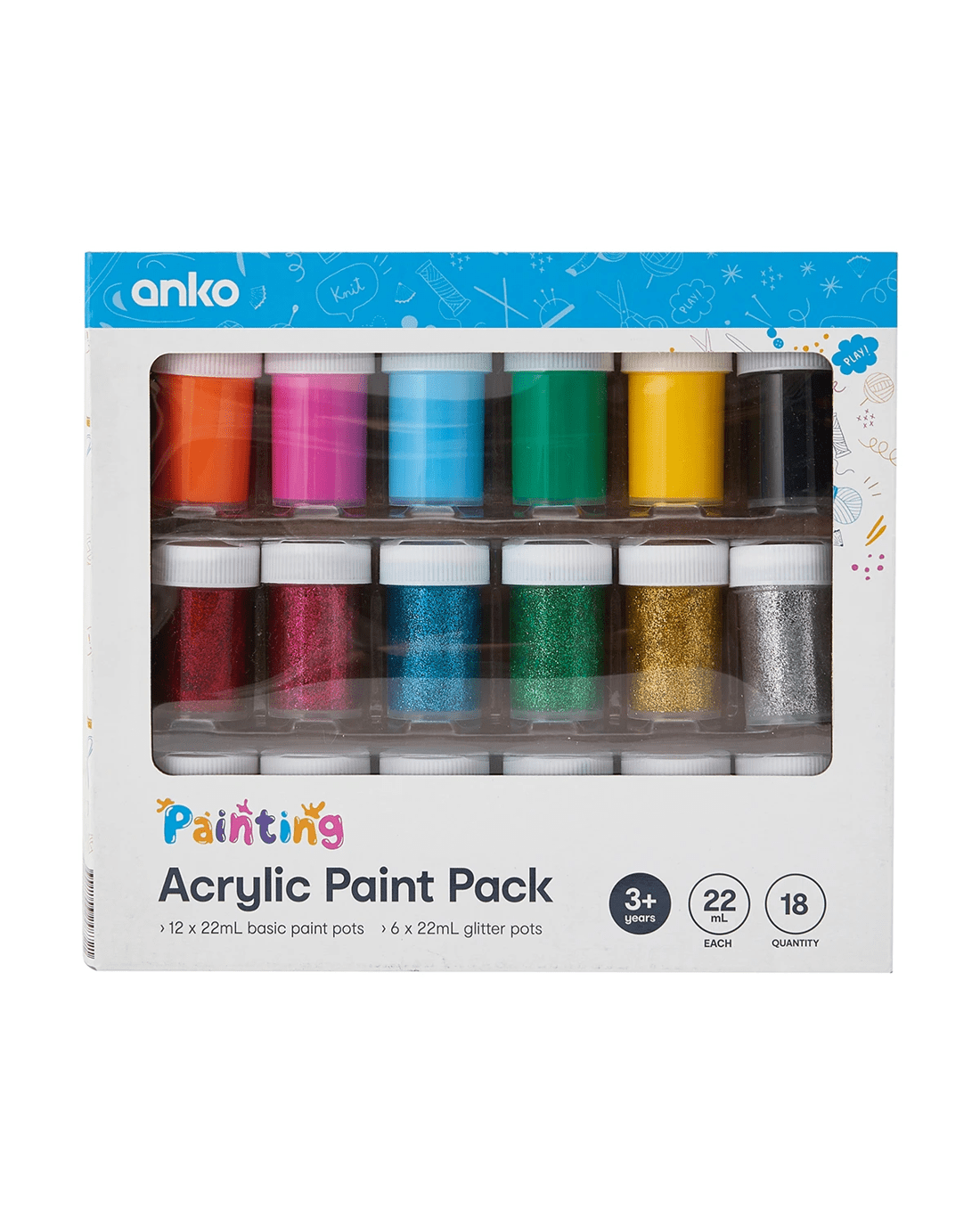 Sold by Kmart18 Pack Acrylic Paint