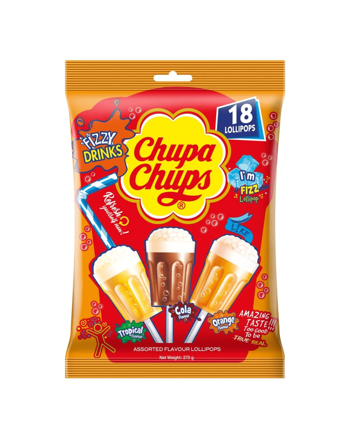 18 Piece Chupa Chups 3D Fizzy Drinks Lollipops 270g