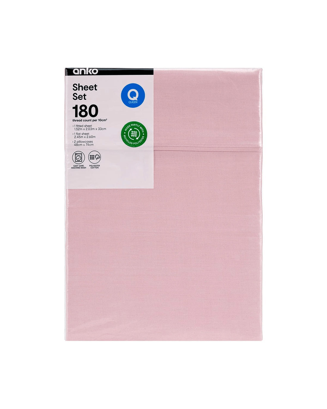 Sold by Kmart180 Thread Count Sheet Set - Queen Bed, Pink