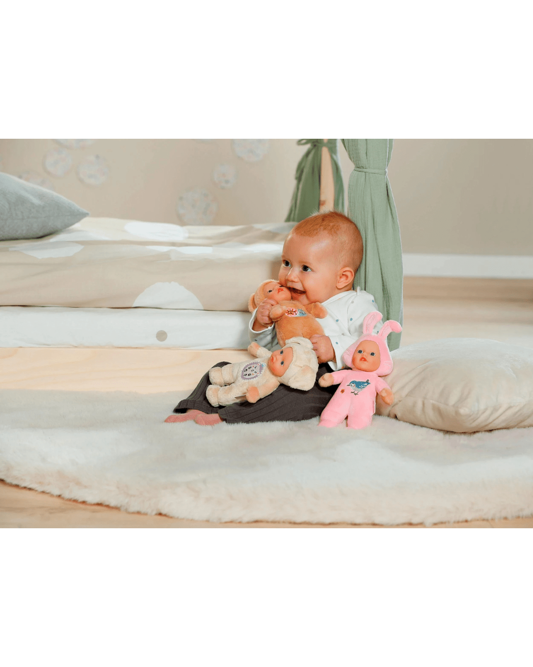 Discover the joy of playtime with the adorable BABY Born for Babies Cutie 3. This charming little doll invites endless cuddles with its soft plush body and sweet long ears, making comfort and fun part of every day. The gentle rattle inside adds playful sounds to spark your little one’s curiosity, while finger pockets in the arms let you bring the bunny to life for delightful interactive moments. Easily attach a pacifier to one of the expressive ears for even more imaginative fun. Fully washable, this precious doll stays clean after many adventures, making it a loving companion for babies from birth. Welcome a bundle of sweetness to your child’s playroom and enjoy countless smiles. Choose your favourite and start creating heartwarming moments today.