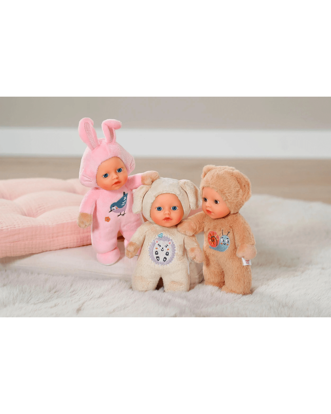 • Animal fun: the two dolls with soft bodies in bunny, puppy and bear look are ideal for first play.
