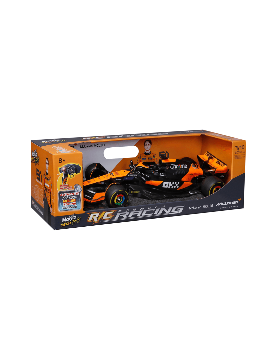 MCL38 is a precision-crafted replica, capturing the sleek aerodynamic design and bold livery of the McLaren MCL38 Racing 2024 formula contender. Built for speed and agility, it offers enthusiasts an immersive racing experience that includes authentic MCL38 engine sounds.