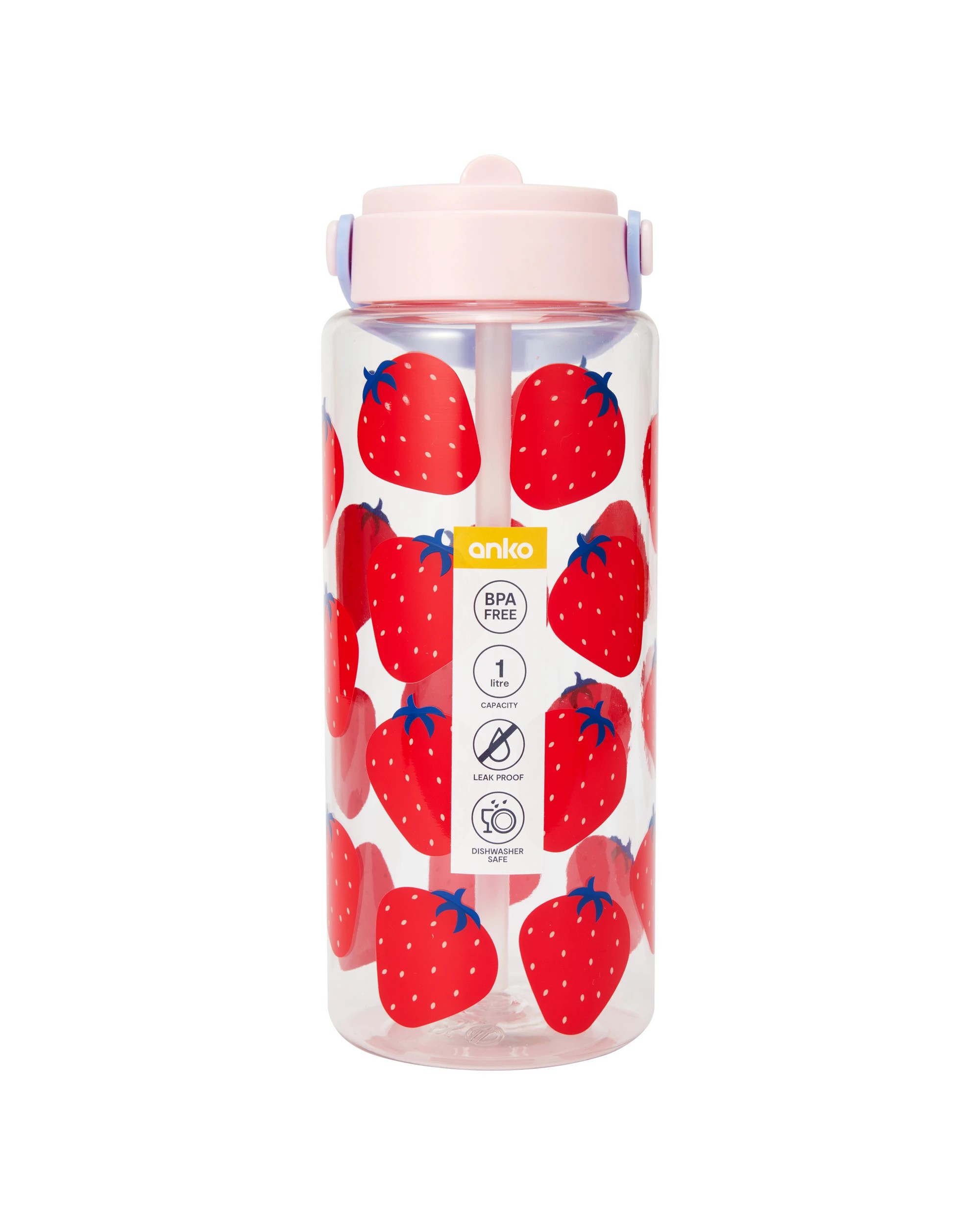Sold by Kmart1L Drink Bottle with Handle - Strawberry