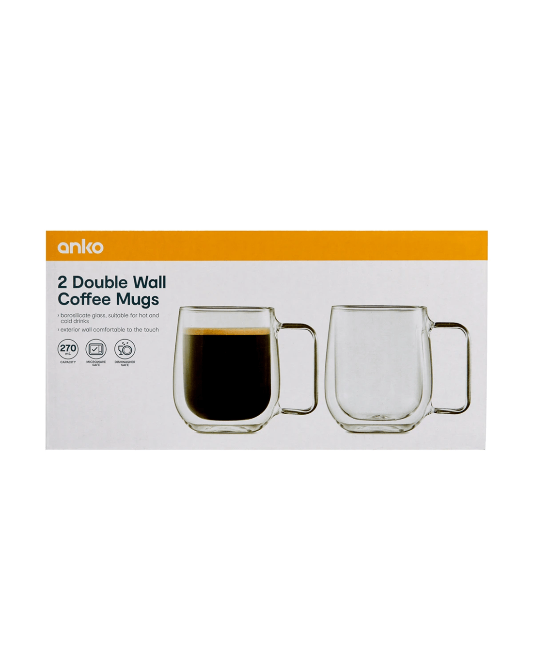 2 Double Wall Coffee Mugs