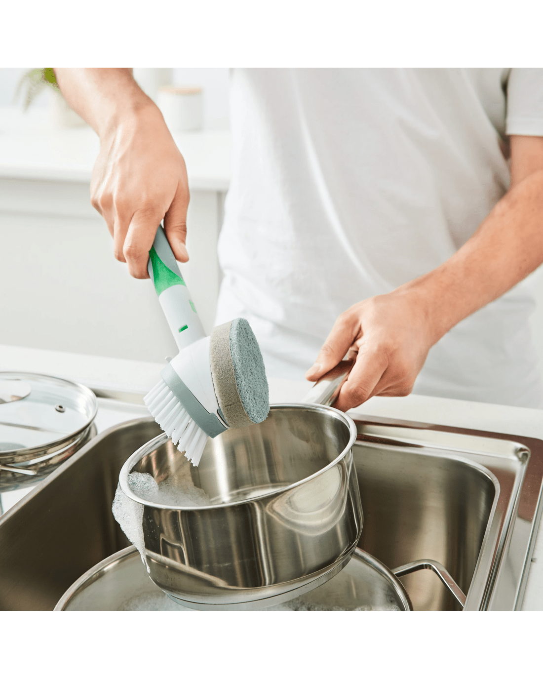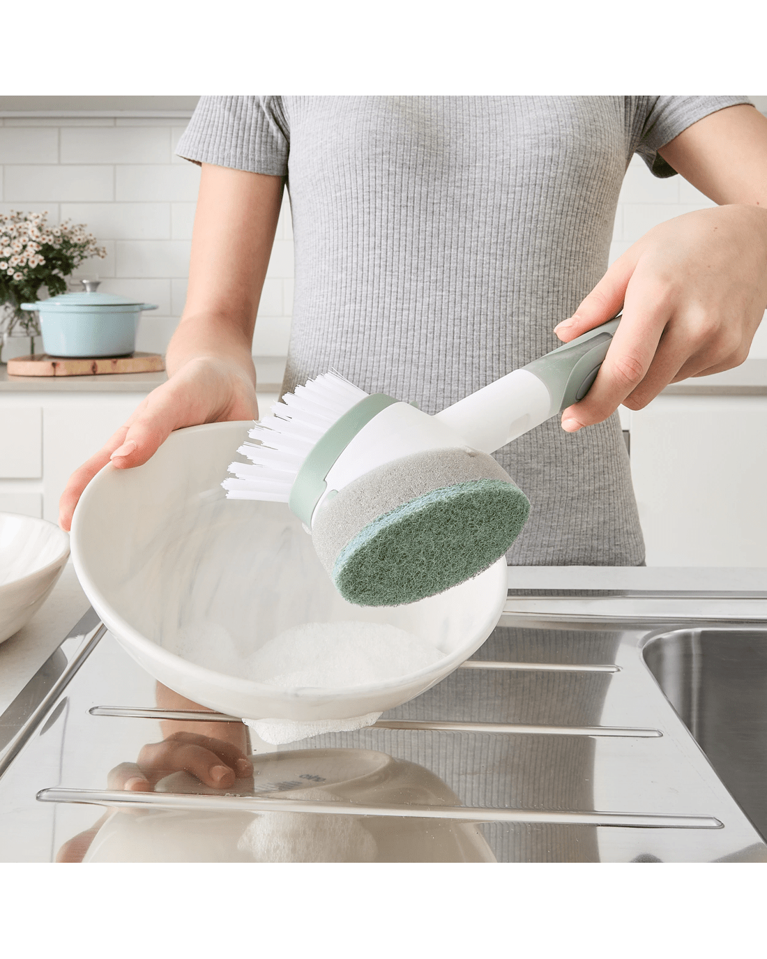 2-in-1 Dish Brush - White and Green