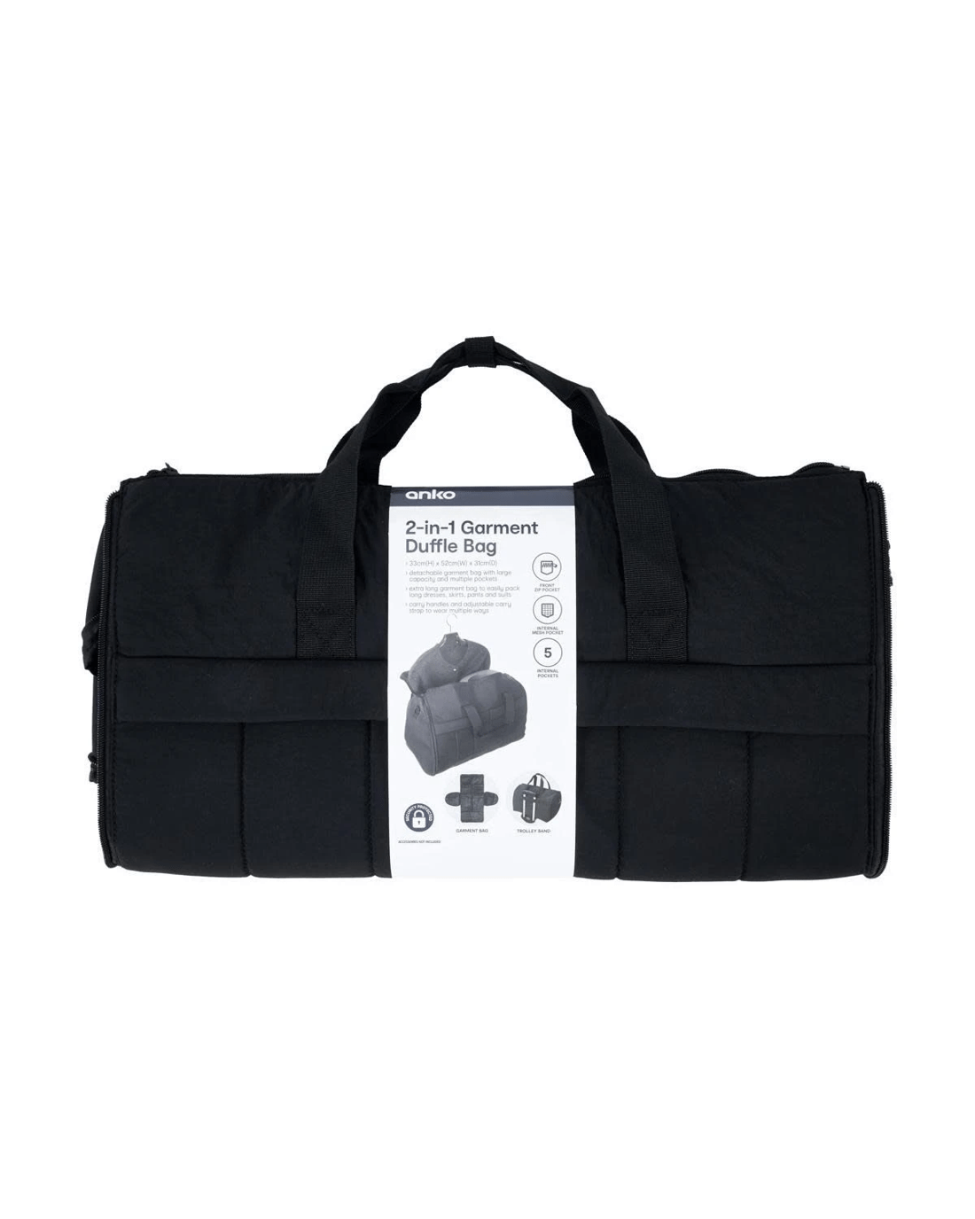 2-in-1 Garment Duffle Bag - Black