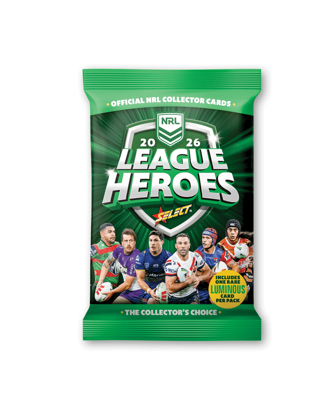 - Includes 2 x packs of 2026 NRL League Heroes cards, 26 x card armour 9 pocket sleeve pages, to house your full 2026 NRL League Heroes base set of cards