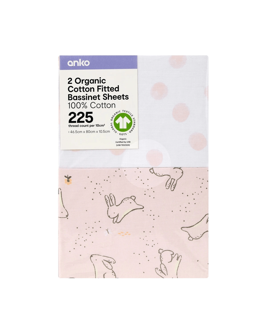Sold by Kmart2 Pack 225 Thread Count Organic Cotton Fitted Bassinet Sheets - Bunny Print