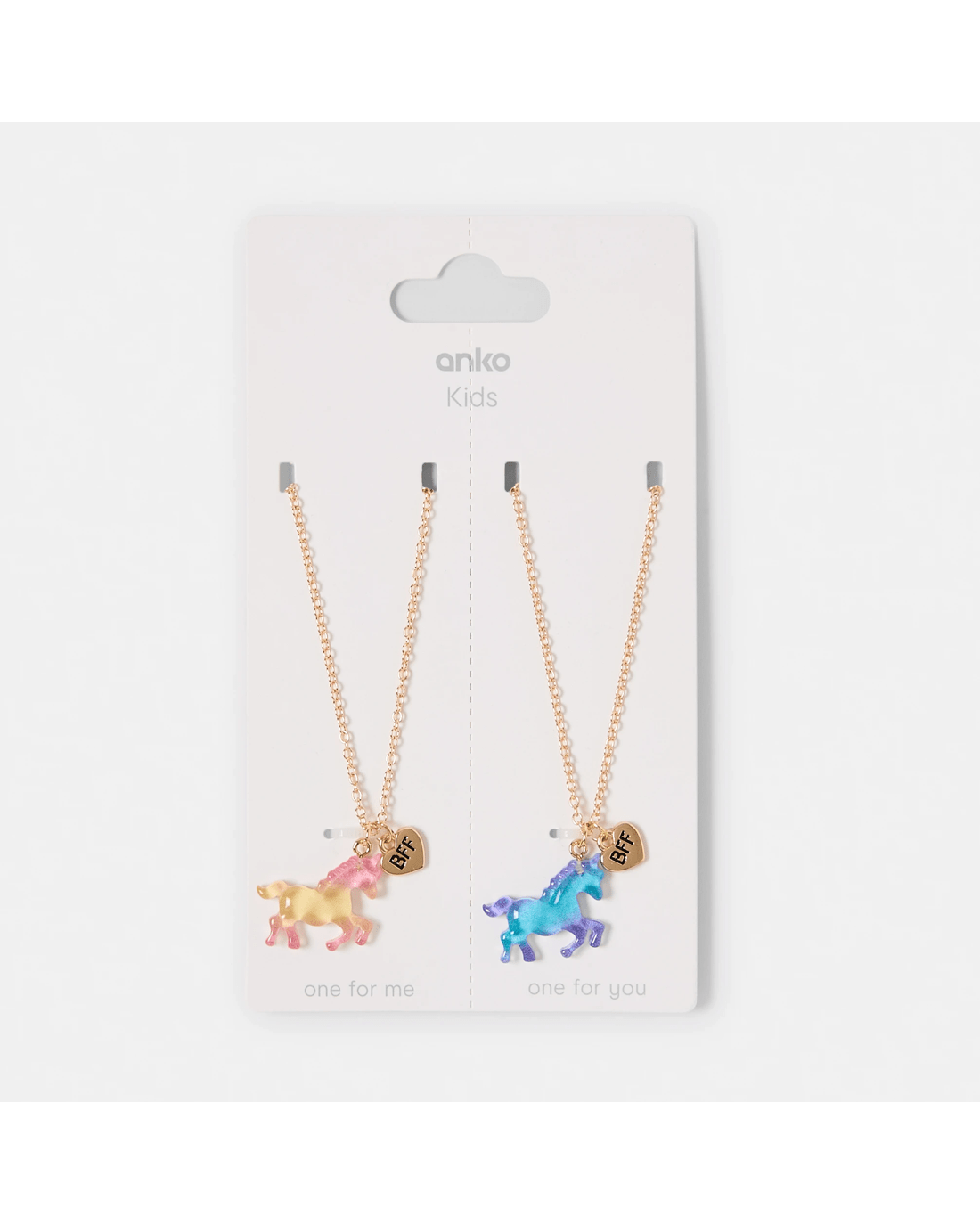 2 Pack BFF Unicorn Necklace Set - Gold Tone