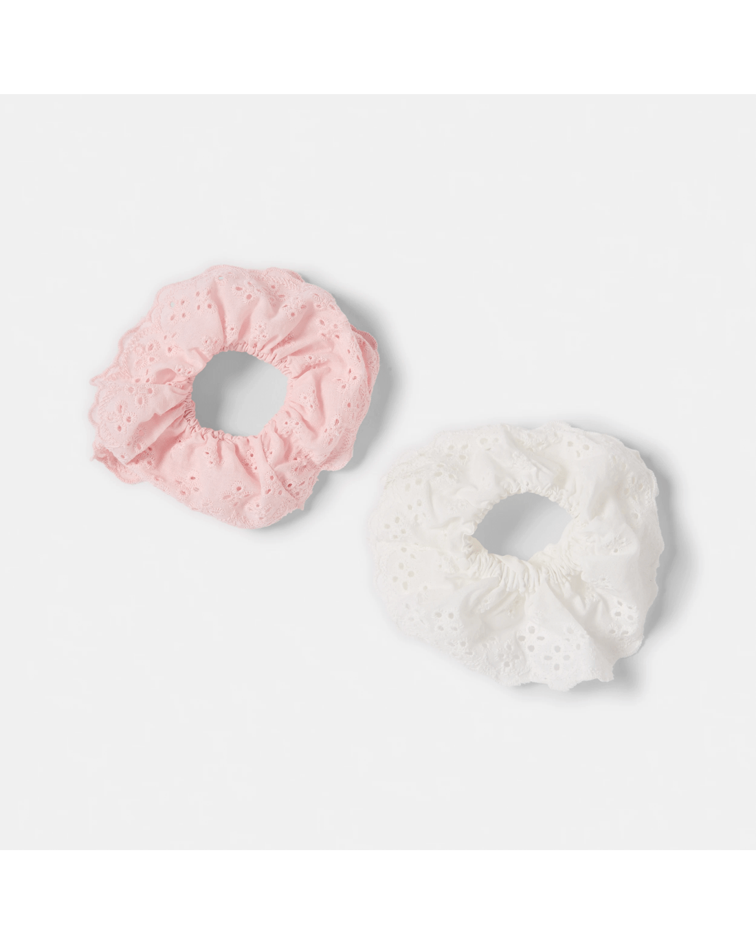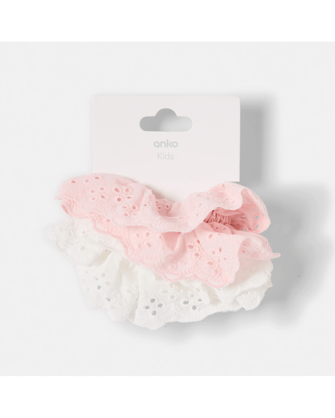 Sold by Kmart2 Pack Broderie Hair Scrunchies - White and Pink