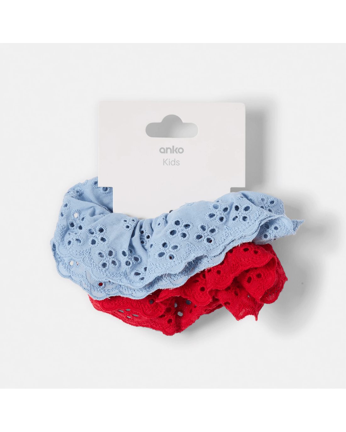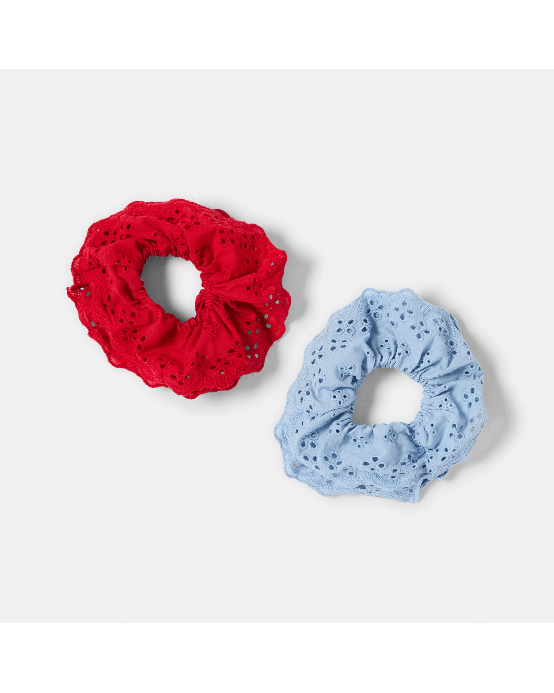 2 Pack Broderie Scrunchies - Blue and Red