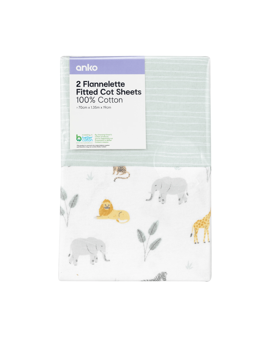 2 Pack Flannelette Cotton Fitted Cot Sheets - Safari and Wave Stripe