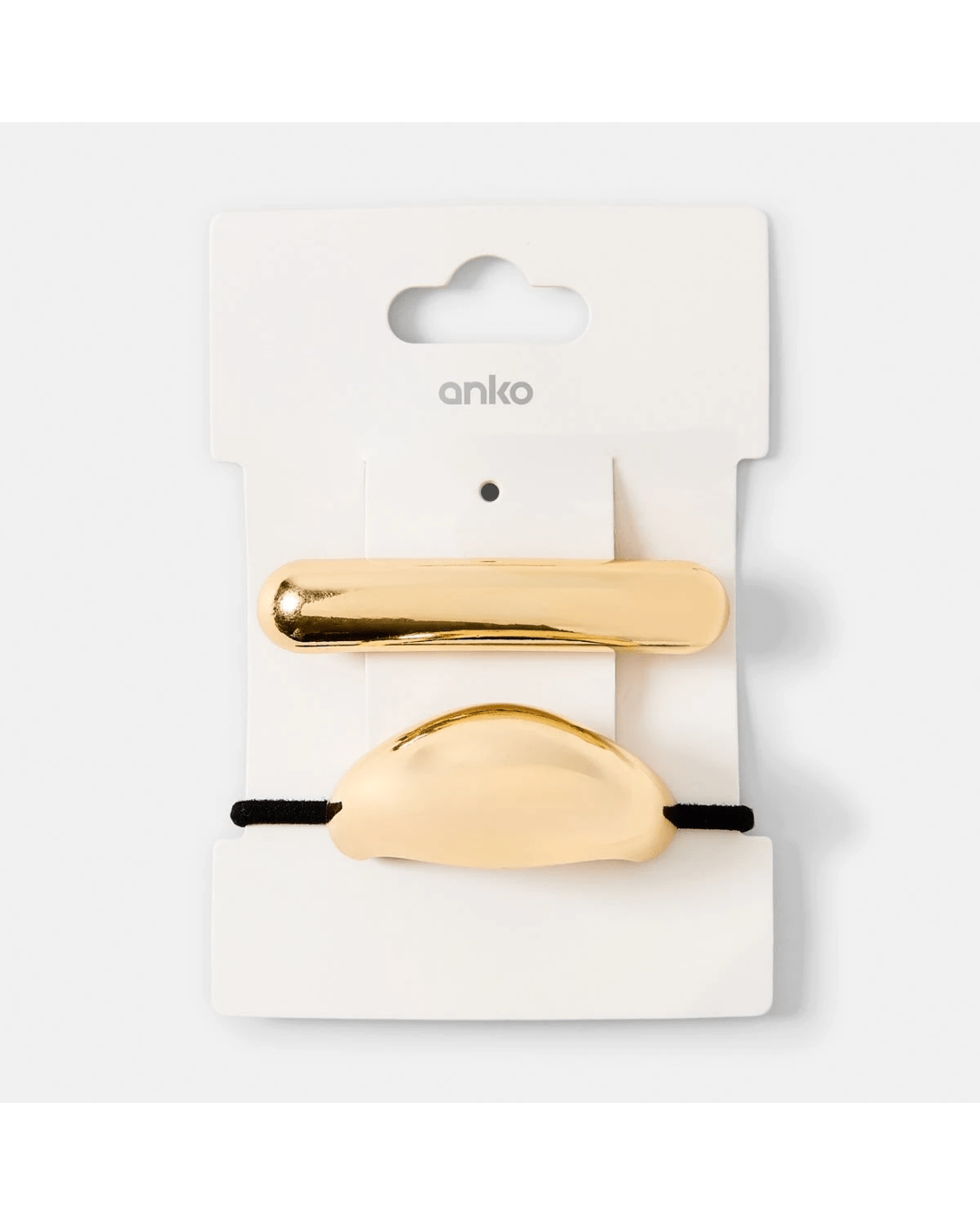 Sold by Kmart2 Pack Gold Tone Barrette Hair Tie and Clip Set