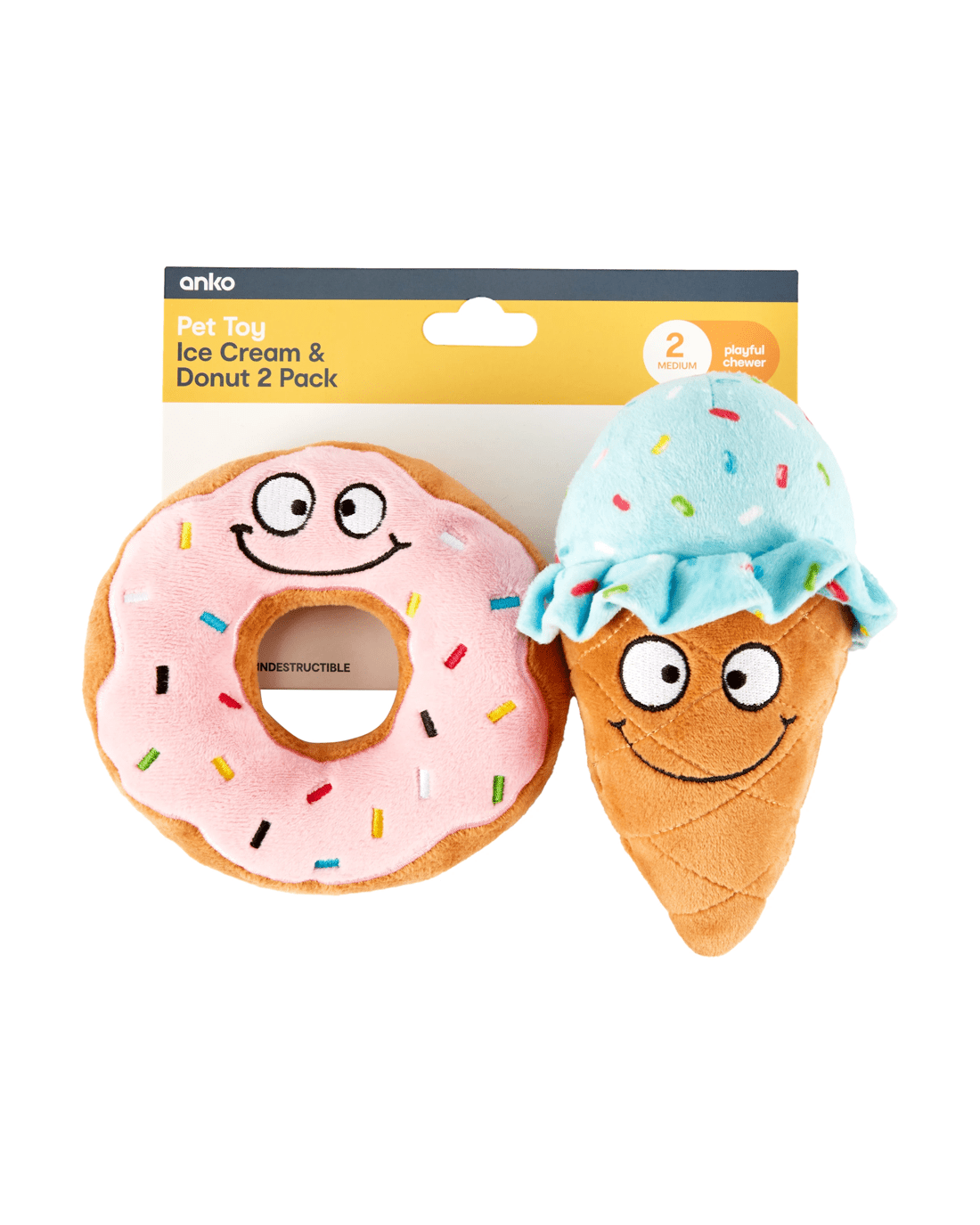 2 Pack Ice Cream and Donut Chew Pet Toy