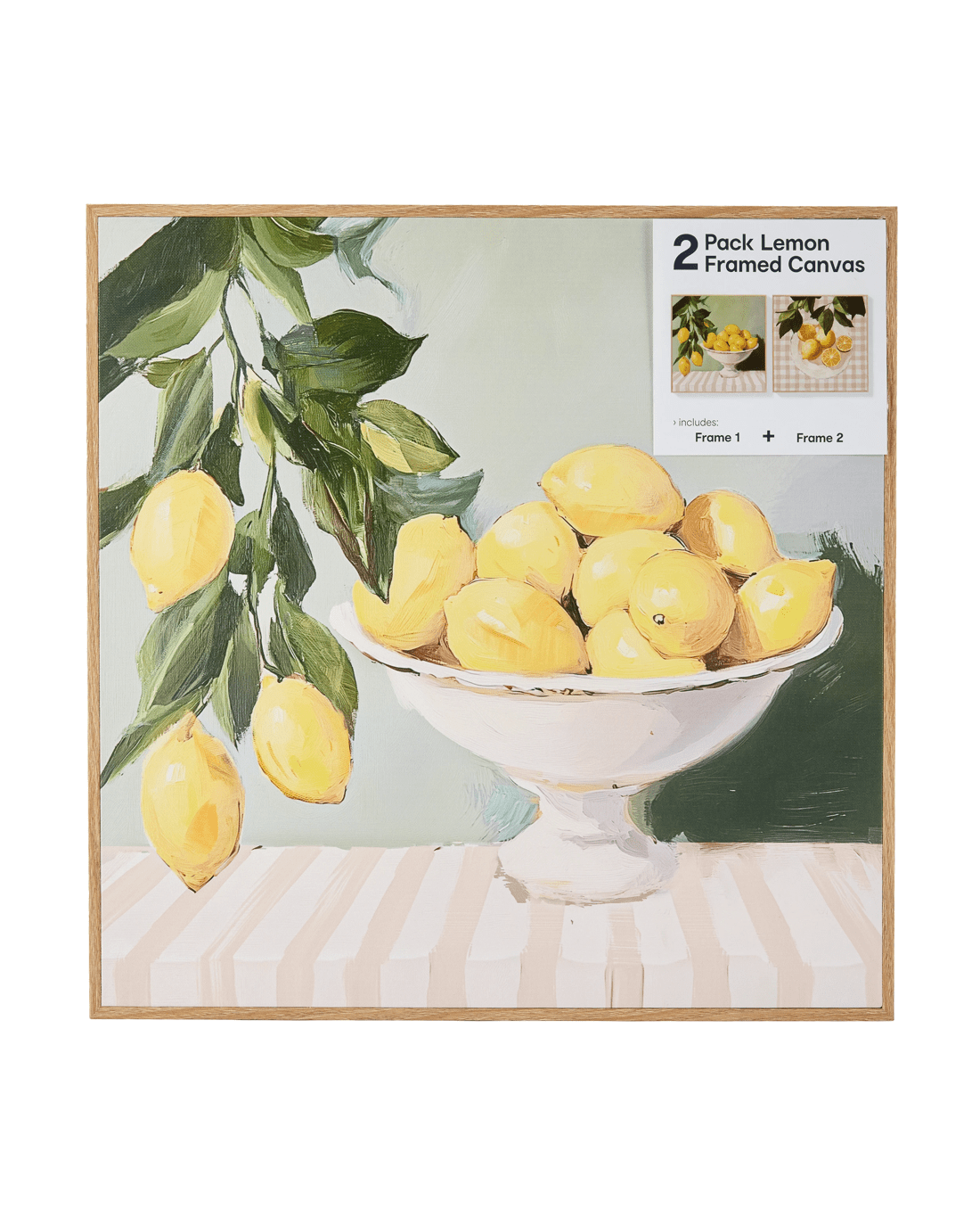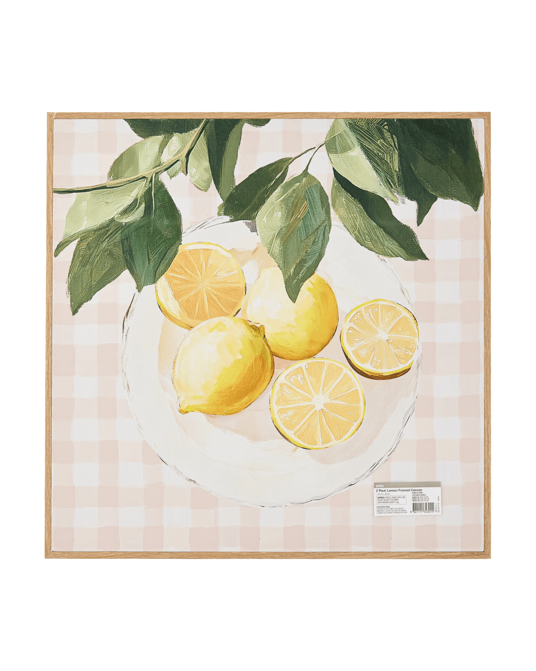 2 Pack Lemon Framed Canvas - 40cm x 40cm