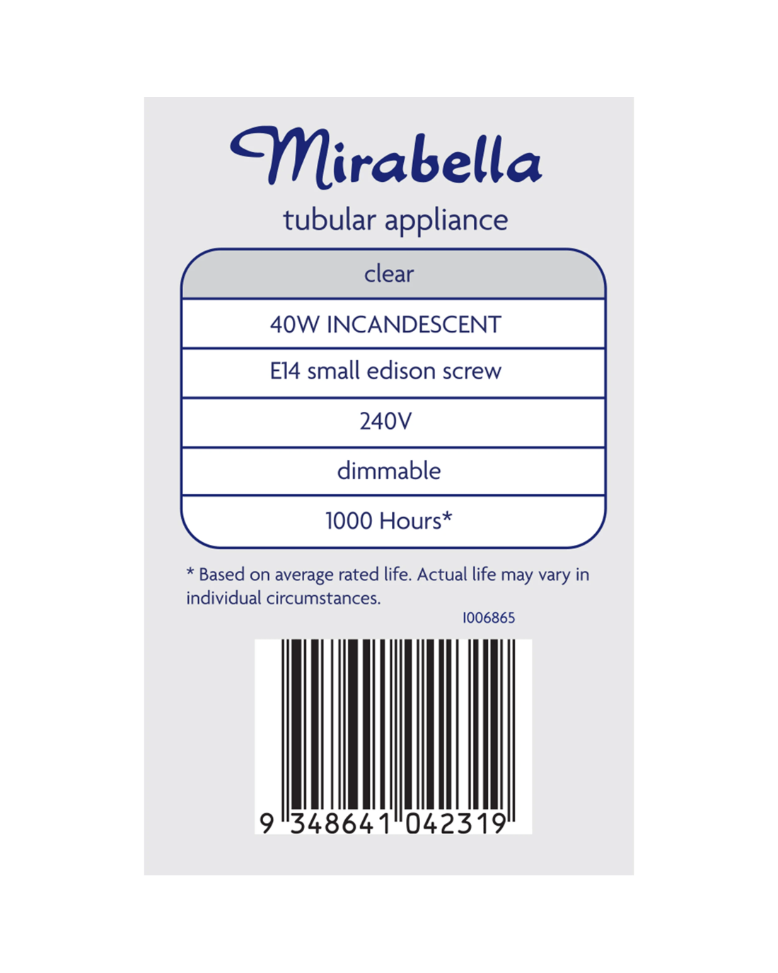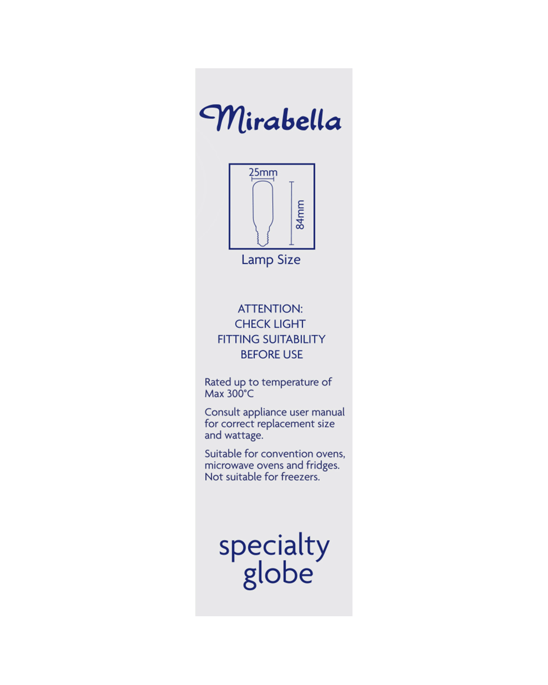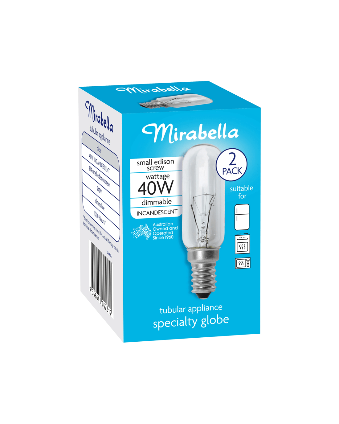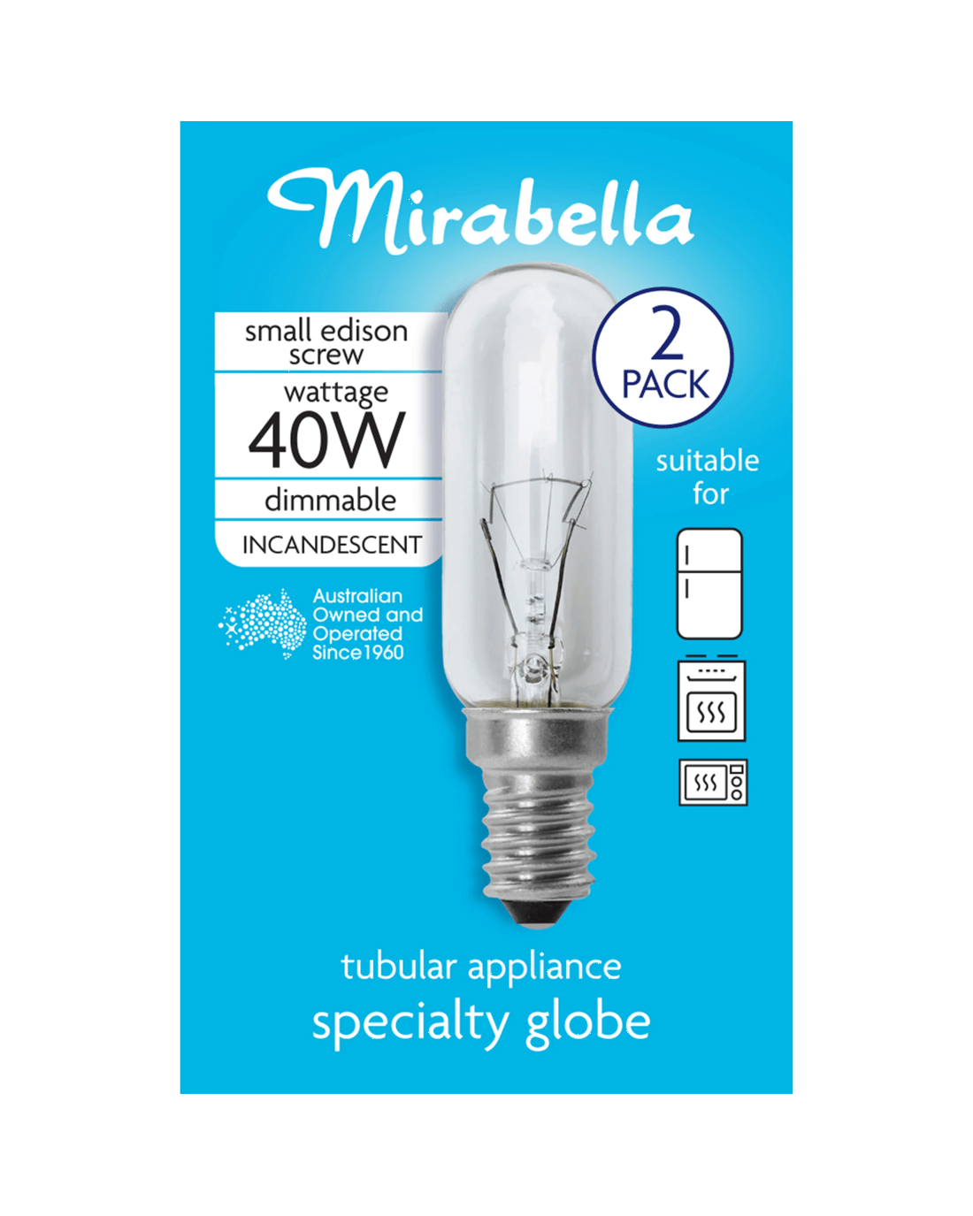 When it comes to lighting, Mirabella has been lighting up Australia since 1960. This Incandescent tubular light globe is ideal for small, enclosed spaces and is suitable for Microwave Ovens and Fridges.