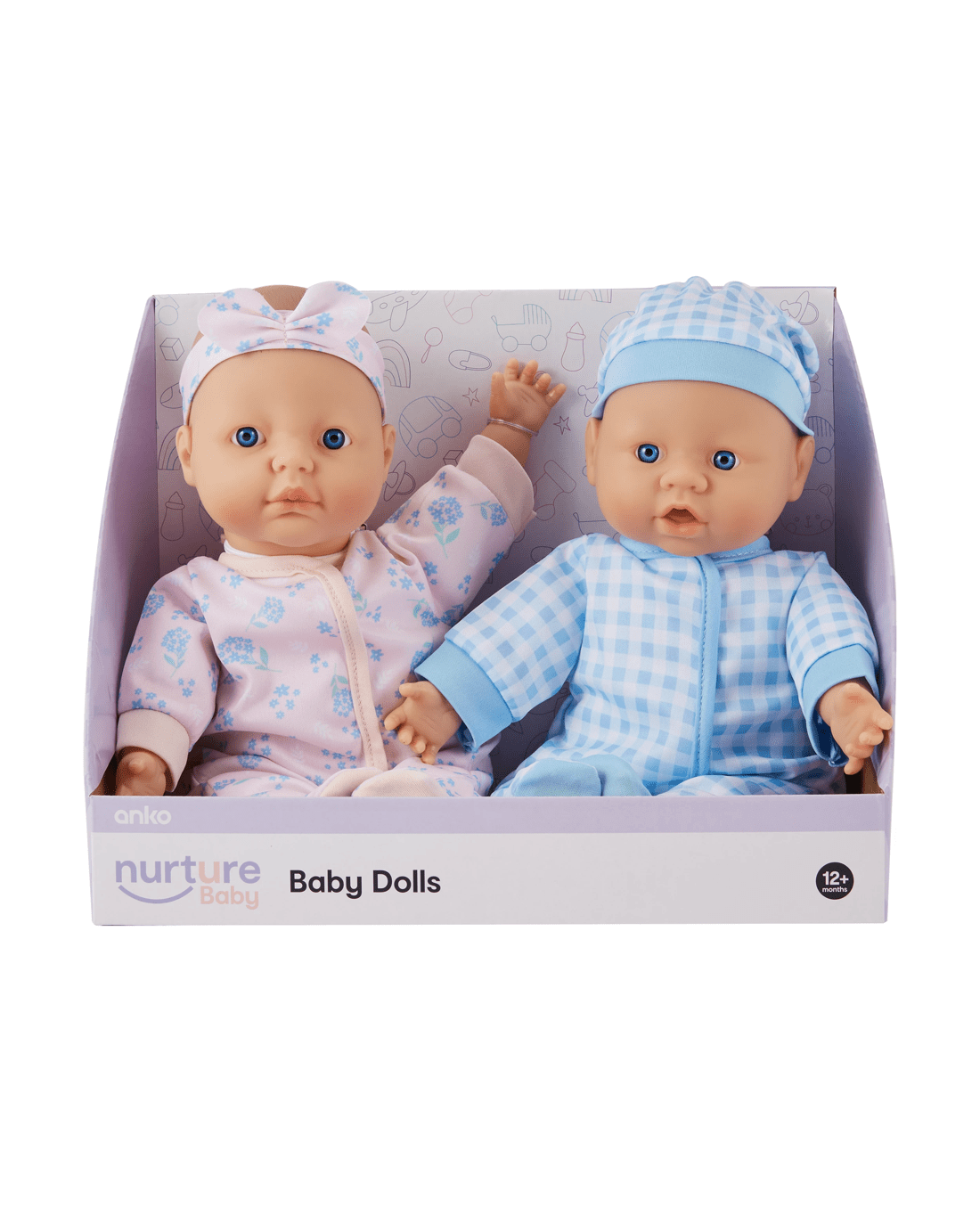 This 2 Pack Nurture Baby: Baby Dolls are perfectly designed for babies to hug and hold. Gentle and comforting, they help early bonding through cuddly play.