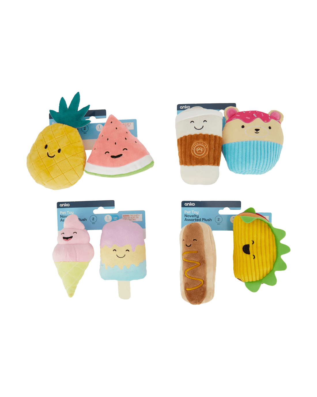 Sold by Kmart2 Pack Pet Toy Plush Novelty - Assorted