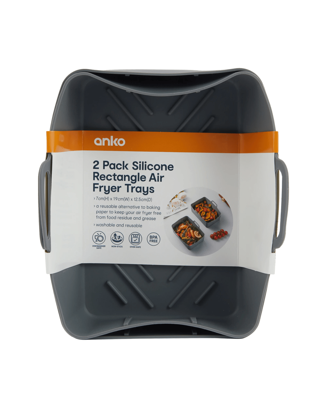 2 Pack Silicone Rectangle Air Fryer Trays - Grey Specifications