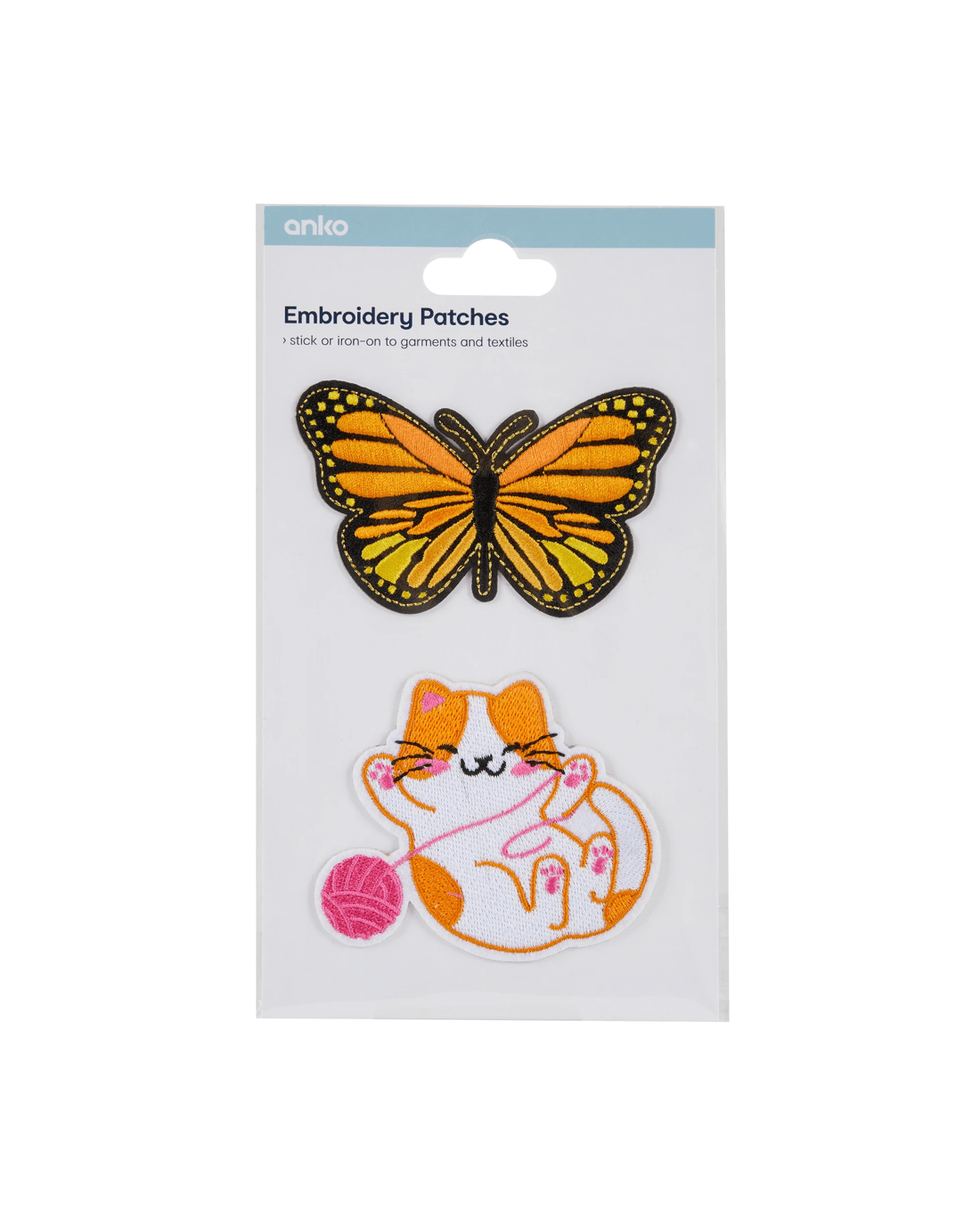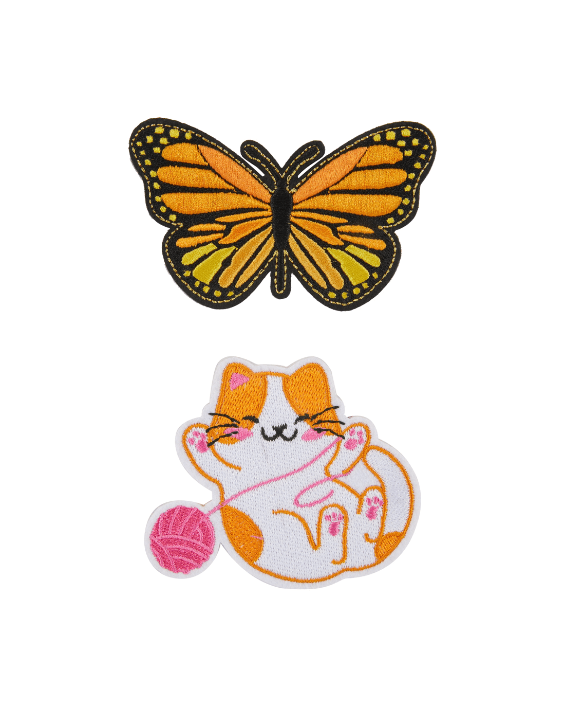 Sold by Kmart2 Piece Embroidery Patches - Butterfly and Cat