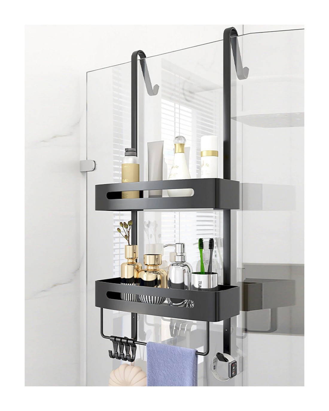 Sold by TODO2 Tier Bathroom Shower Caddy Aluminium Alloy Rust Free Waterproof Bath Storage w/ Crossbar Rack- Carbon Grey - Grey